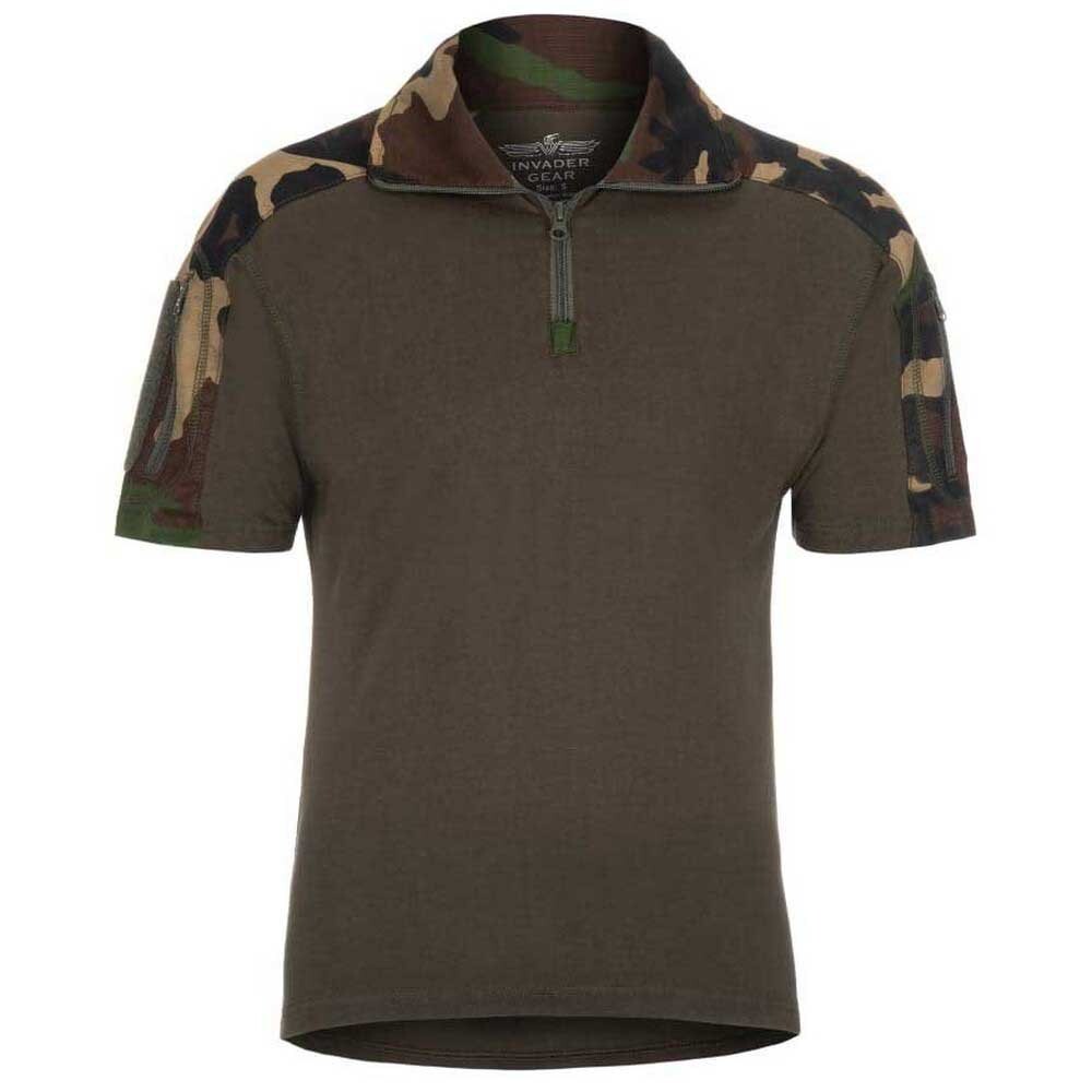 Компания Invader Gear была основана в 2004 году и всегда фокусировалась на оборудовании с выдающимся соотношением цены и качества. В основном бренд предлагает большой выбор тактической одежды современного дизайна в широком диапазоне цветов и камуфляжных рисунков, а также все виды нейлонового тактического снаряжения, такого как жилеты, переноски для пластин, подсумки MOLLE, рюкзаки, защитные накладки, стропы и многие другие продукты, которые следует той же философии. Боевая рубашка Invader Gear с коротким рукавом обеспечивает отличные влагоотводящие свойства под бронежилетом, а отсутствие длинных рукавов исключает удержание тепла. Современный крой разработан для оптимального прилегания к пользователю. Карманы на воротнике и плечах оснащены высококачественной молнией YKK. Высокий воротник защищает шею от мусора и строп. На внешнем слое карманов расположены большие панели с крючками и петлями для идентификационных знаков подразделения или нашивок боевого духа. Рукава, воротник и область плеч этой боевой рубашки изготовлены из прочного тканого материала рип-стоп, состоящего из 60 % хлопка и 40 % полиэстера, что обеспечивает высокий комфорт при ношении и быстрое высыхание. Торс изготовлен из невероятно удобного трикотажа, состоящего из 92% хлопка и 8% эластичного трикотажа, с хорошими влагоотводящими свойствами.