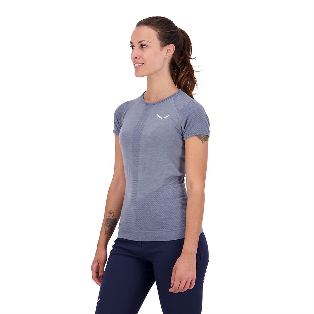 Изготовлена из влагоотводящих, дышащих, легких и быстросохнущих тканей. что позволяет вам чувствовать себя комфортно все время. Смесь мериносовой шерсти обладает холодными свойствами хлопка и устойчива к запахам, что делает ее менее зудящей и сохраняет тепло, даже когда вы мокрые. Дышащий материал ткани позволяет испарениям влаги выходить, регулируя температуру тела, повышая комфорт внутри футболки Salewa. Шарнирный дизайн с эластичными тканями обеспечивает максимальные и эффективные движения, в то время как облегающая посадка уменьшает объем, что делает его идеальным и в качестве многослойного изделия.