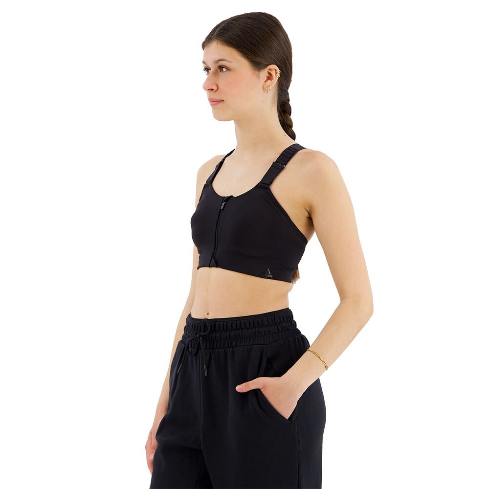 Просто застегните молнию на этот спортивный бюстгальтер adidas, и все готово.