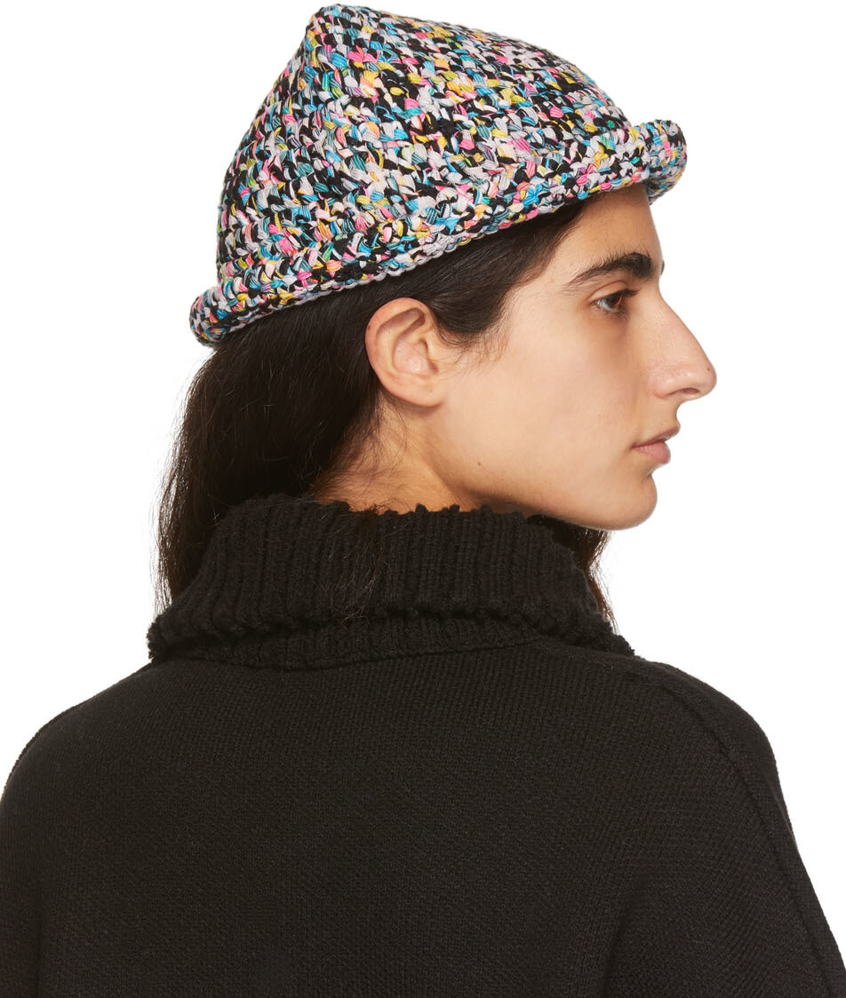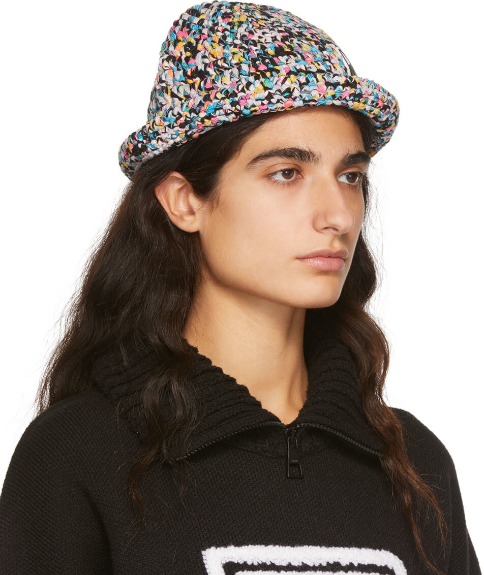Вязаная крючком панама из смеси нейлона, разноцветная, с прорезиненной нашивкой с логотипом красного и белого цветов спереди.