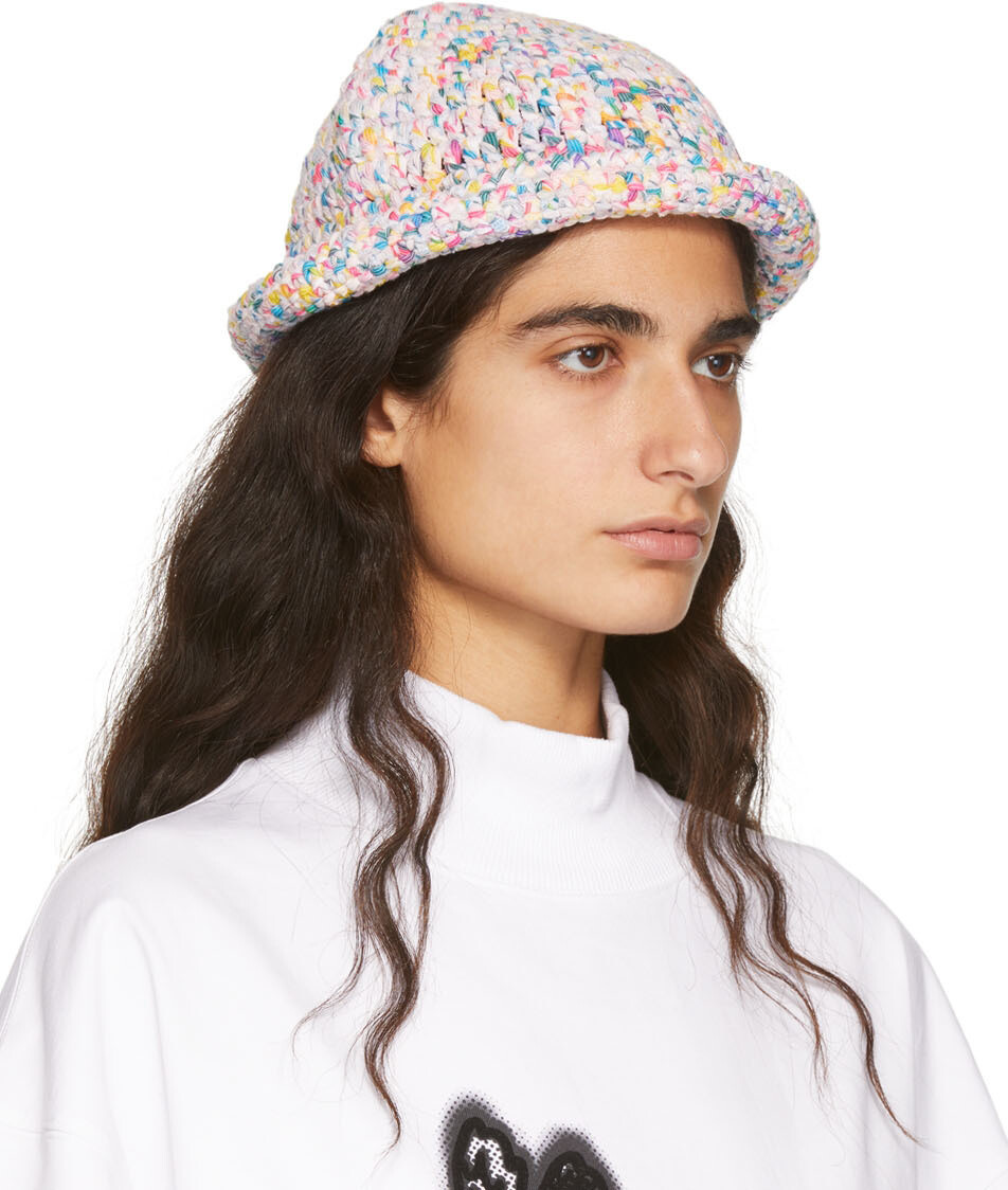 Вязаная крючком шляпа-ведро из смеси нейлона, многоцветная, с прорезиненной нашивкой с логотипом красного и белого цветов спереди.