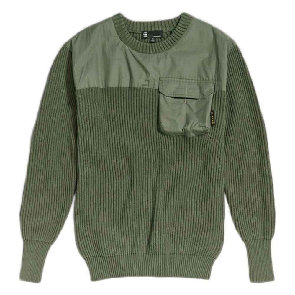 Вязаный свитер Army имеет прямую посадку и имеет тканый карман с клапаном на груди. Скрытая застежка-липучка обозначена вышивкой сверху. Этот свитер унисекс связан ребристой структурой. Верхняя часть груди и локти усилены тканой тканью, как и нагрудный карман. Высокие манжеты завершают этот унисекс-дизайн. Размеры унисекс соответствуют мужским размерам.
