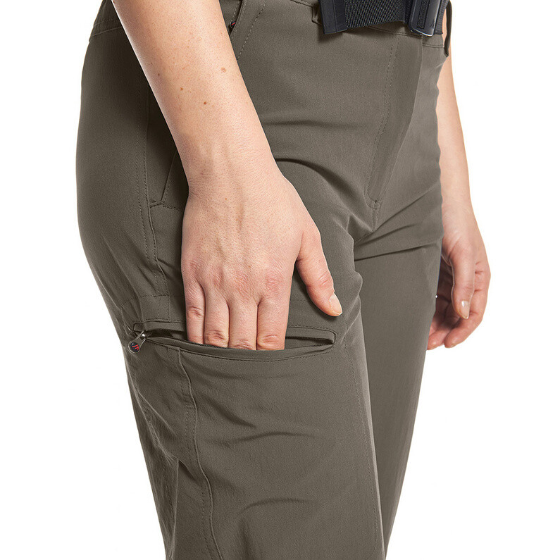 В остальном быстросохнущая, дышащая ткань гарантирует быстрый перенос влаги, а удобная для движения конструкция, тянущаяся в четырех направлениях, обеспечивает обеспечивается максимально возможный комфорт. Наконец, эластичный пояс с петлями для ремня и встроенный ремень также обеспечивают индивидуальную посадку. Это делает универсальные брюки Arolla Zip Pants идеальными треккинговыми брюками для самых разных погодных условий.