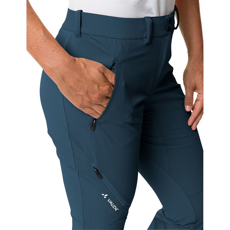 Брюки Vaude Scopi II — легкие, быстросохнущие и водоотталкивающие туристические брюки для женщин. Его эластичный, дышащий материал, отмеченный знаком Green Shape для экологически чистого производства, является ветроотталкивающим, а благодаря эко-отделке также оптимально водоотталкивающим. Продуманный крой и колени предварительной формы обеспечивают высокий уровень комфорта. Различные карманы спереди и на штанинах позволяют разместить необходимое пространство для компаса, перекуса для мобильного телефона и т. д. Манжеты на штанинах можно расширить с помощью молнии и поэтому легко надеть на любую горную обувь.