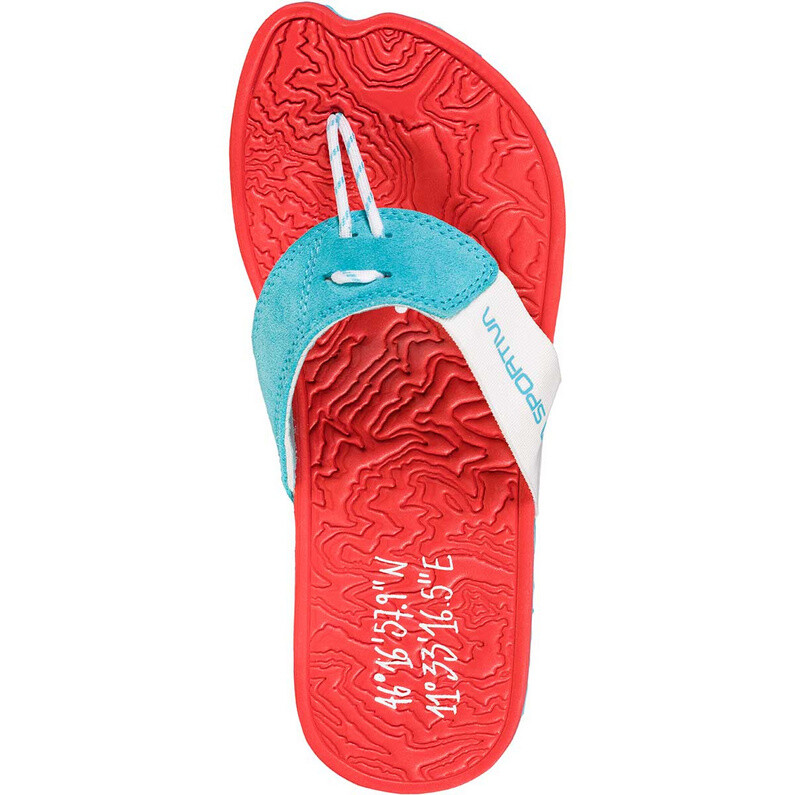 Для настоящих фанатов: структурированная стелька не только показывает координаты штаб-квартиры La Sportiva, но даже формирует топографию Валь-ди-Фьемме. выключенный! Вполне логично, что разделитель пальцев имеет шнур, продетый через ремешок в виде шнура.