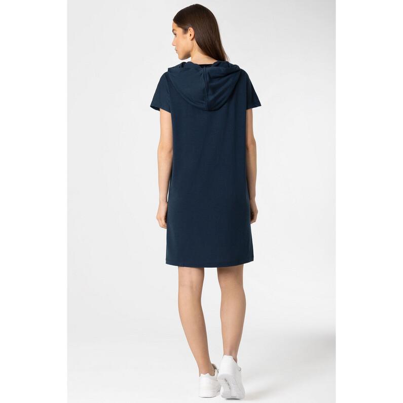 Платье-воронка от Super.Natural не сразу раскрывает, из чего оно на самом деле сделано. Женщинам стоит надеть их, чтобы заметить мягкий материал и высокий уровень комфорта. Легкая мериносовая шерсть сохраняет прохладу в теплые дни и подавляет неприятный запах, если день напряженный. Смесь материалов быстро сохнет, проста в уходе и долговечна. Короткое платье с капюшоном на каждый день.