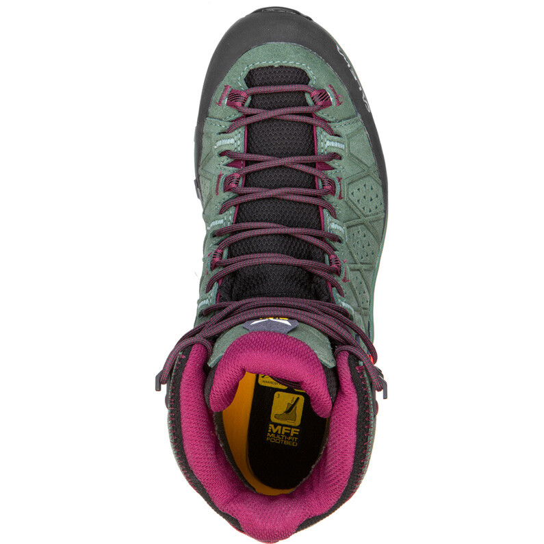 Водонепроницаемый и дышащий материал Gore-Tex. подкладка делает туриста комфортным при каждом движении и обеспечивает бескомпромиссную защиту от непогоды. Благодаря дополнительной паре стелек, системе стельки Multi Fit в сочетании с системой шнуровки Climbing Lacing вы можете оптимально адаптировать обувь, изготовленную с использованием специальной женской колодки, к вашей индивидуальной форме стопы.
