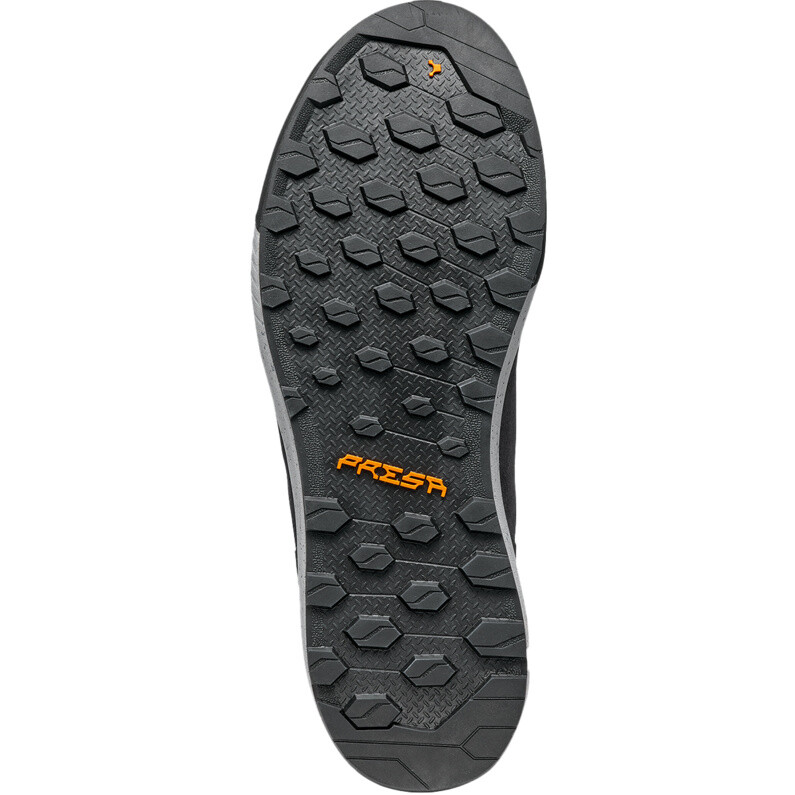 Как и следовало ожидать от итальянского специалиста по горной обуви, высококачественные полуботинки хорошо сделаны, имеют точную форму. регулируется и хорошо сидит на ноге. Нескользящая резиновая подошва с небольшой зоной подъема изготовлена из устойчивого к истиранию материала, что впечатляет, несмотря на то, что именно благодаря высокому содержанию переработанного материала в камне.