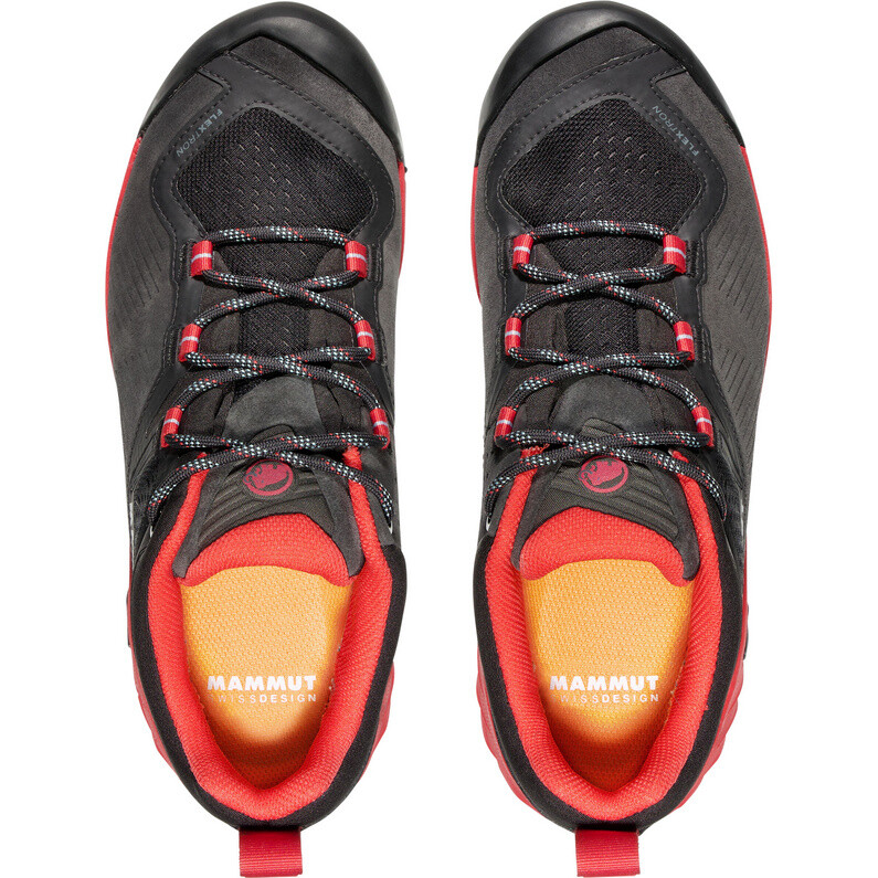 Что касается поведения при ходьбе, кроссовки впечатляют встроенной технологией MAMMUT Flextron Technology, которая поддерживает естественное поведение качения и, таким образом, способствует более эффективному использованию энергии во время походов и альпинизма. Подошва Vibram обеспечивает оптимальное сцепление на пути к вершине.