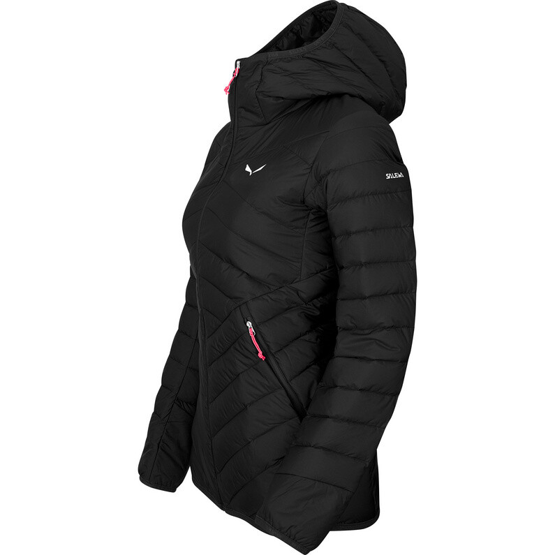 Женская куртка Brenta — новинка от Salewa будущей зимы: высококачественный гусиный пух плотностью наполнения 550 куинов грамотно уложен и надежно защищен под ветро- и водоотталкивающим слоем.