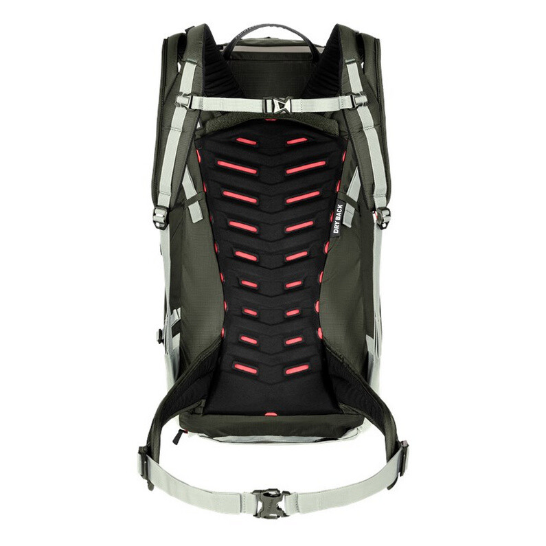 Снаружи вы найдете несколько крепёжных петель, к которым можно быстро прикрепить снаряжение. Эргономичные и разделенные плечевые ремни обеспечивают высокий уровень комфорта; разделение также означает, что они хорошо вентилируются и обеспечивают быстрый отвод накопленного тепла. Задняя панель тоже очень воздушная.