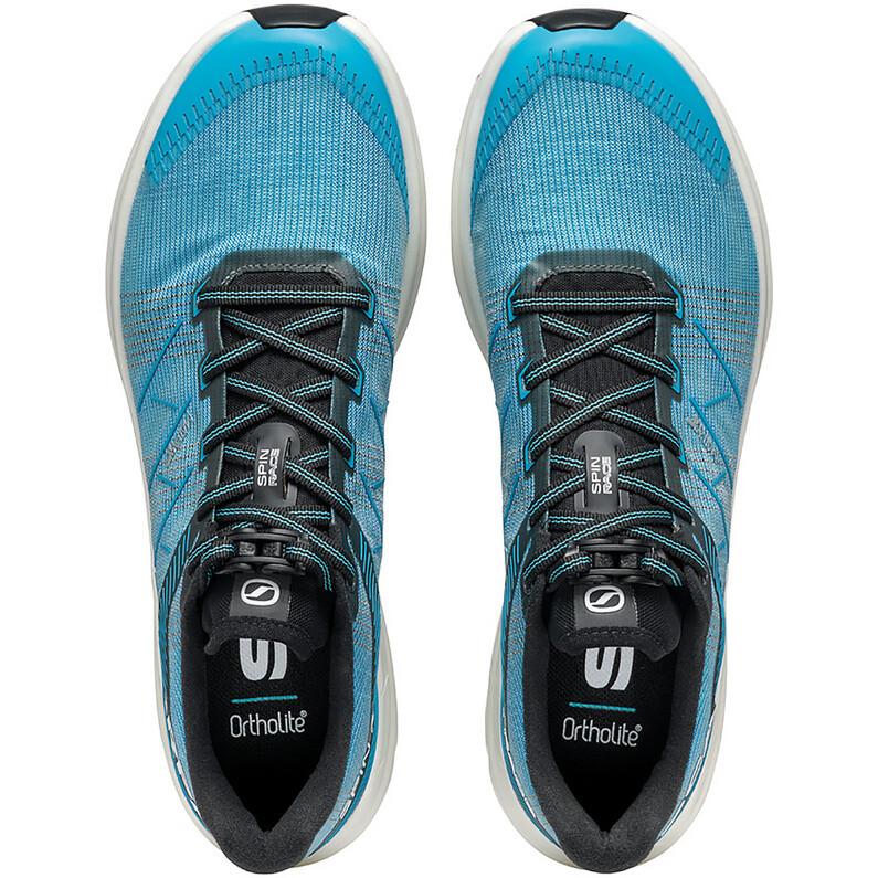 Бескомпромиссное внимание к производительности проявляется как в весе, так и в высоком отскоке. Верхний материал дышащий, но при этом чрезвычайно устойчив к истиранию: сетчатый материал стабилизирован легкими термотиснеными пленками, а в качестве подкладки используется эластичный, быстросохнущий материал с хорошей подкладкой в пяточной части. Spin Race также обеспечивает наилучшие характеристики бездорожья, особенно на разнообразных и сложных горных тропах, благодаря нескользящей подошве Vibram из резины Megagrip.