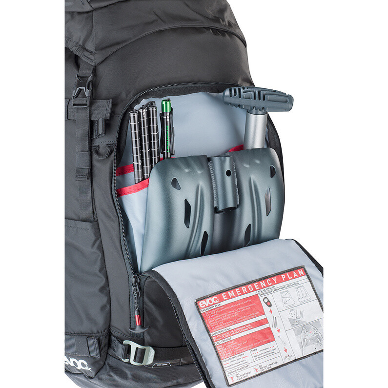 Обширные возможности погрузчика с верхней загрузкой обеспечивают возможность оптимальной организации оборудования с помощью таких деталей, как системы крепления для лыж, сноубордов, снегоступов, ледорубов, палок, дополнительного альпинистского снаряжения и легкодоступных карманов на крышке, на набедренный ремень для аварийного оборудования и очков, мобильного телефона или с водонепроницаемым отделением для мелких деталей. Также можно легко интегрировать питьевую систему.