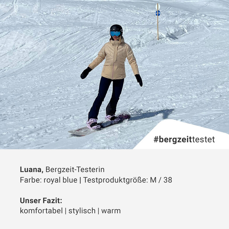 Вывод тестера Bergzeit Луаны: «Я думаю, это замечательно, что я могу использовать эти брюки как для катания на лыжах, так и для сплитборд-туров. В сочетании с пуховиком Ragnhild этот костюм станет отличным компаньоном на лыжах. склоны согревают вас, повторяют каждое движение и выглядят очень круто - поэтому ничто не мешает весело провести время на снегу."