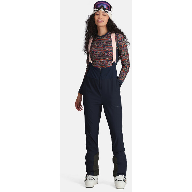 Нагрудник выглядит женственно, но при этом прочен — именно то, что женщина ожидает от оптимальных лыжных брюк.