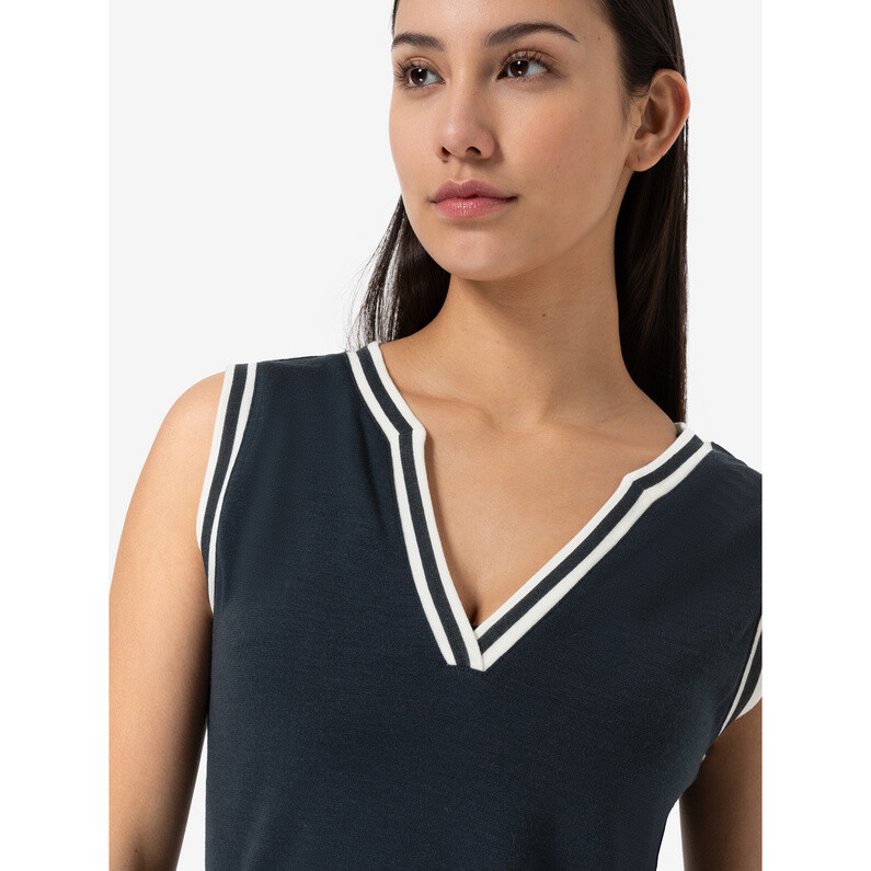 Повседневное платье без рукавов из биоразлагаемых синтетических волокон Primaloft BIO, смешанных с мягкой мериносовой шерстью контролируемого происхождения.