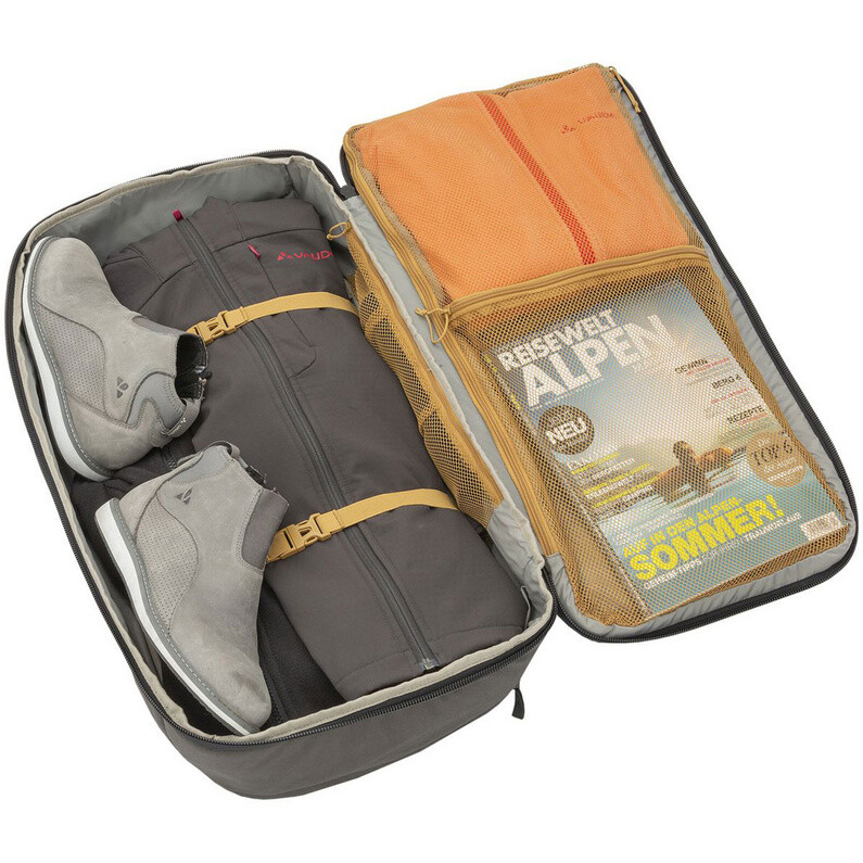 Особенной особенностью рюкзака Mundo 65+ To Go является то, что его можно полностью открыть и он имеет так называемую двухуровневая конструкция. Таким образом, у вас есть очень хороший доступ к вашим вещам, которые можно хранить в упорядоченном и чистом виде. Мягкие ручки для переноски или убирающиеся плечевые ремни позволяют удобно обращаться с рюкзаком и переносить его на большие расстояния. ...