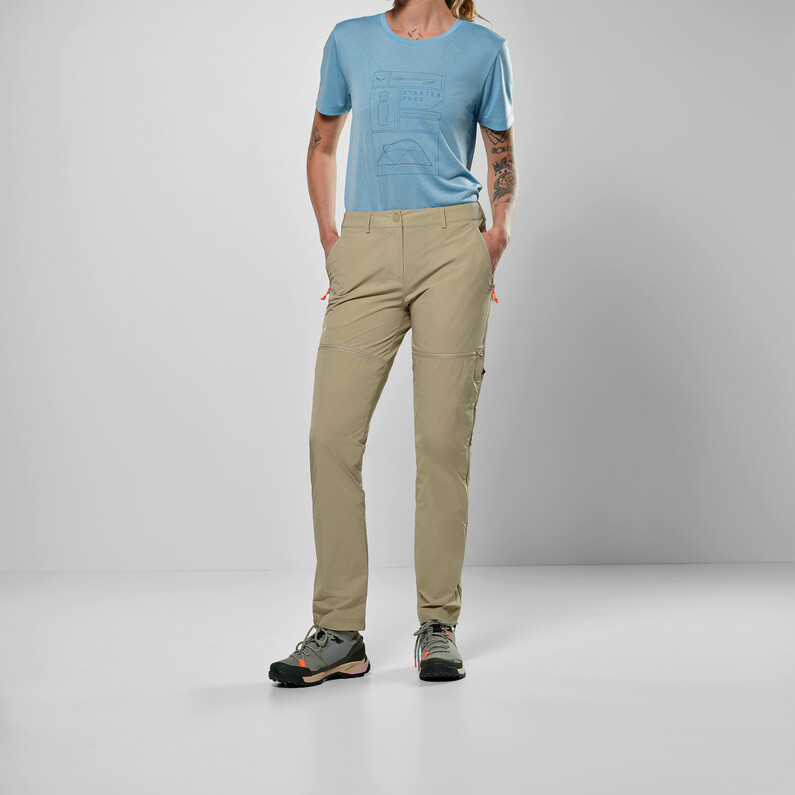 Женские брюки Puez Talvena DST 2/1 от Salewa — это прочные походные брюки супер-кроя с практичной функцией застежки-молнии.