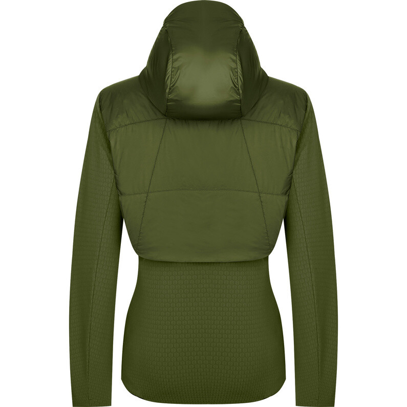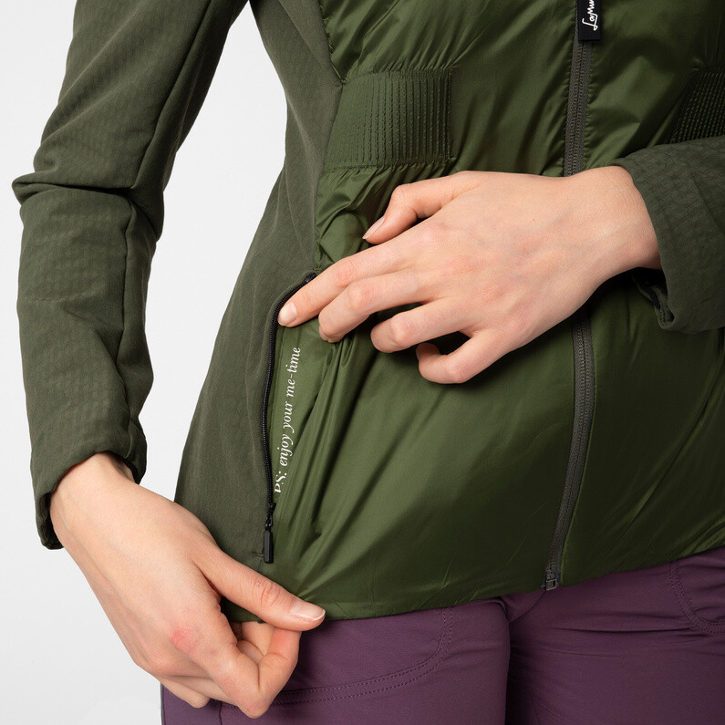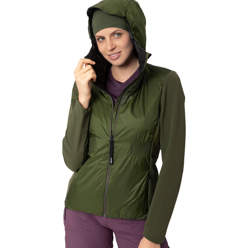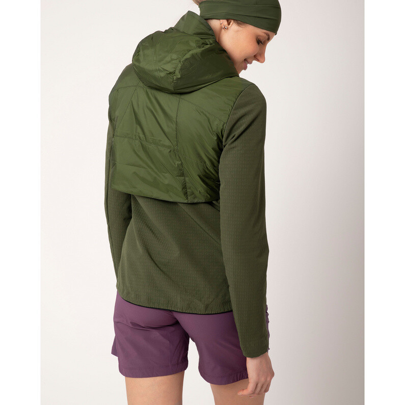 Покрой изделия, вдохновленный крыльями, подчеркивает силуэт тела, мягко подчеркивает талию и удлиняется сзади. Частично набитый наполнитель Remoca Pad, уникальный наполнитель из синтетического изолирующего волокна, изготовленный из переработанных шкур лыж, обеспечивает оптимальное тепло. Капюшон предварительной формы, козырек и мягкий воротник сочетают в себе комфорт и защиту. Большая сетчатая вставка для оптимальной циркуляции воздуха и эластичный низ повышают комфорт при ношении на новый уровень. Два практичных боковых кармана на потайных молниях дополняют лаконичный повседневный вид куртки, которую можно носить отдельно или в качестве среднего слоя.