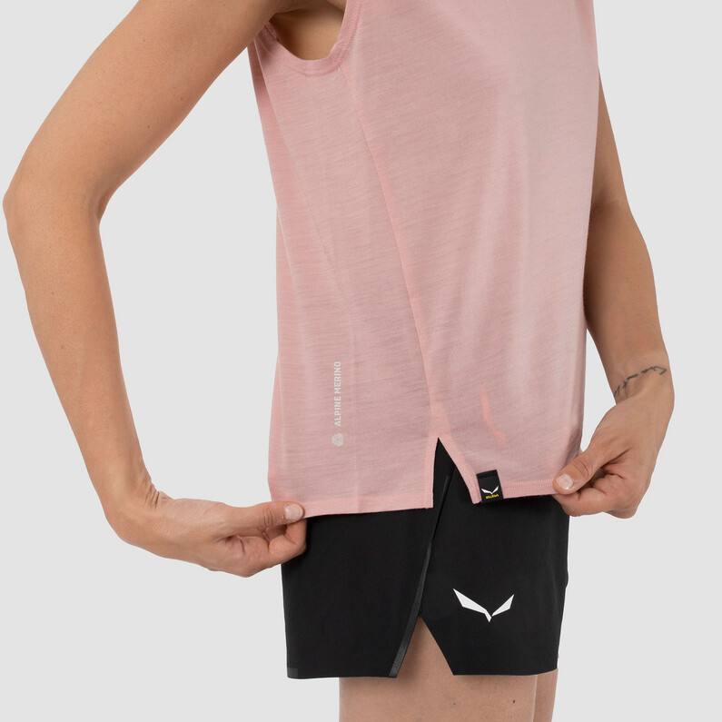 Женский топ Pedroc Am от Salewa не только выглядит шикарно, но и хорошо себя чувствует в горах.