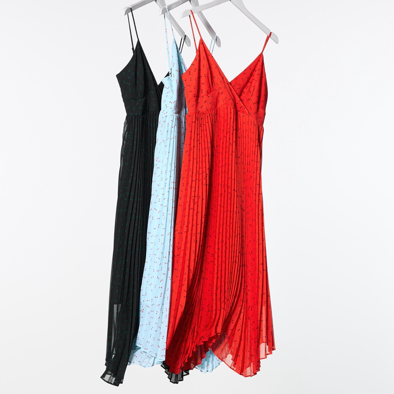 - Модель с завышенной талией украшена элегантными и плавными складками.