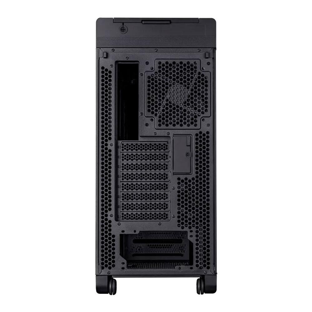 Корпус ASUS ProArt PA602 имеет габариты 593 × 560 × 245 мм и массу около 16 кг. Корпус выполнен из холоднокатаной стали, закаленного стекла и ABS-пластика. Впереди, сверху и снизу стоят противопылевые фильтры. Для удобства транспортировки есть небольшие ролики.