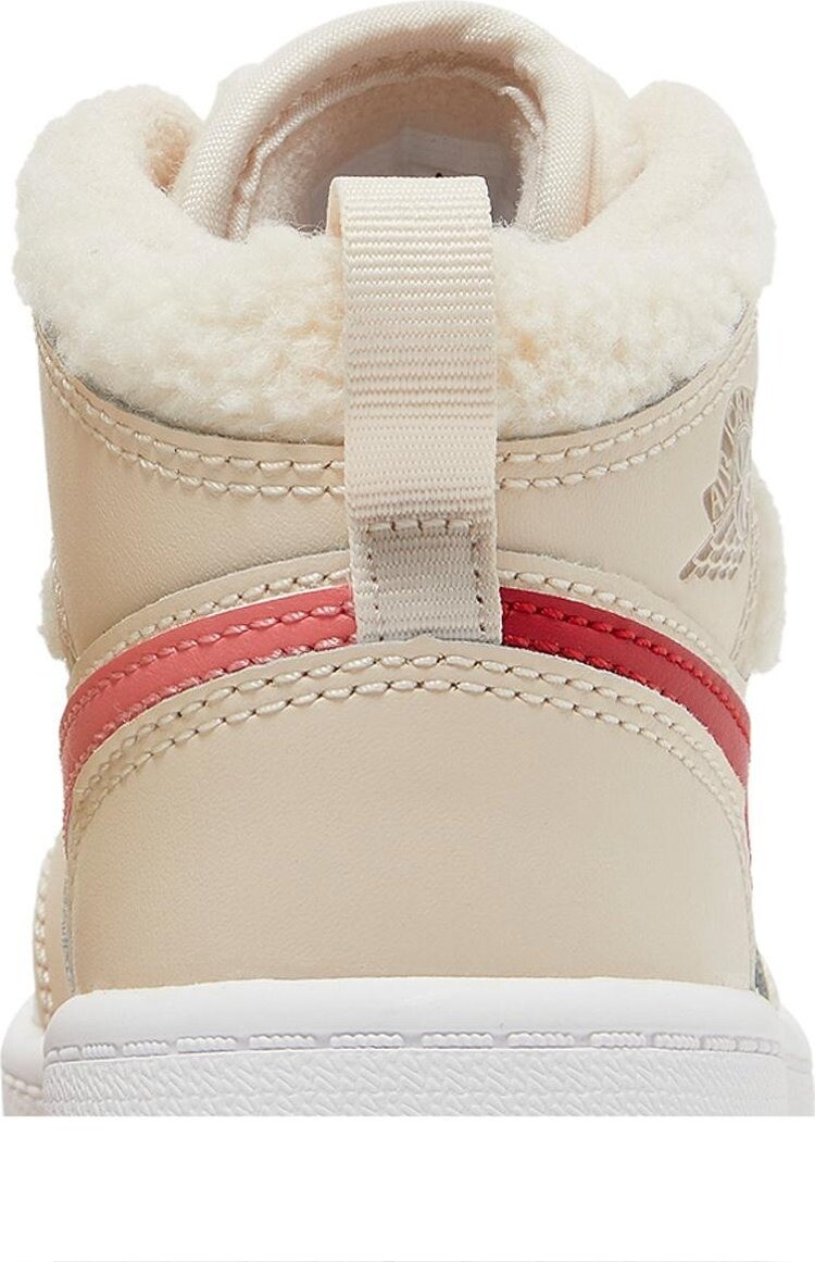 Кроссовки Air Jordan 1 Mid Utility PS «Fleece», предлагаемые в размерах для маленьких детей, придают классическому силуэту уютный вид. Верх выполнен из кожи жемчужно-белого цвета с петлей для подтягивания на пятке и мягкой флисовой конструкцией на воротнике и язычке. Контрастные цветовые акценты появляются благодаря несовпадающим логотипам-галочкам на каждой обуви. Средняя часть верха опирается на белую резиновую межподошву с герметизированной вставкой Air-sole в пятке. Резиновая подошва под ногами обеспечивает цепкое сцепление.