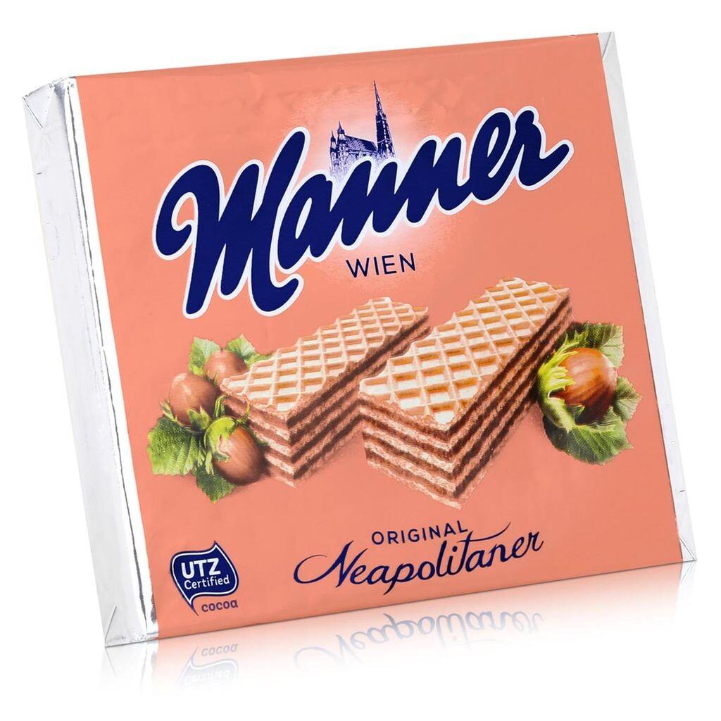 Маннер Неаполитанцы – это хрустящие вафли в несколько слоев, наполненные начинкой из орехового крема. Небольшое удовольствие между ними. Также идеально подходит для следующей беседы за кофе.