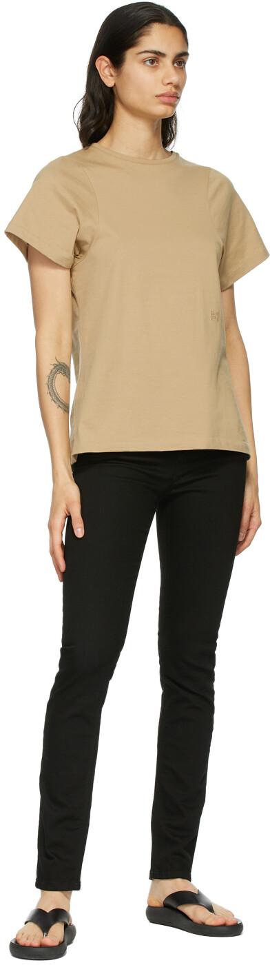Джинсы скинни из эластичного денима черного цвета. Высотный. Модель с пятью карманами. Шлевки для ремня на поясе. Кожаная нашивка с логотипом коричневого цвета на поясе сзади. Застежка-молния. Серебристая фурнитура.