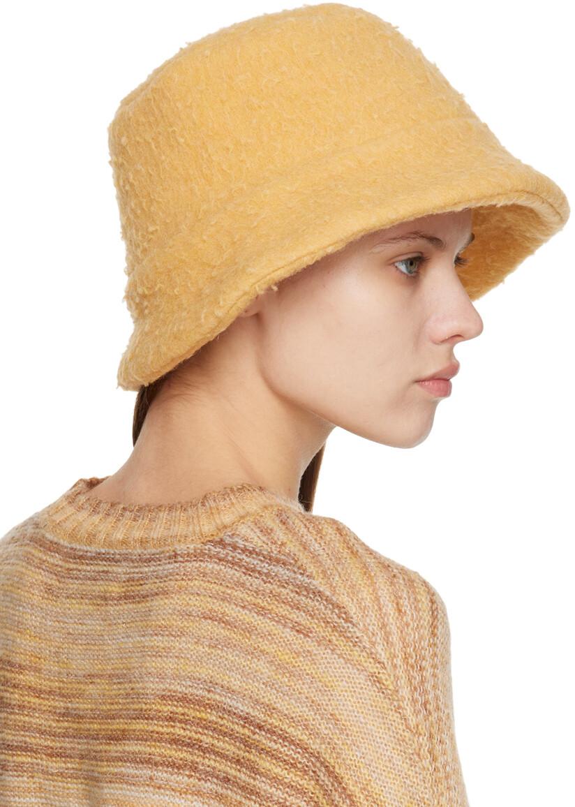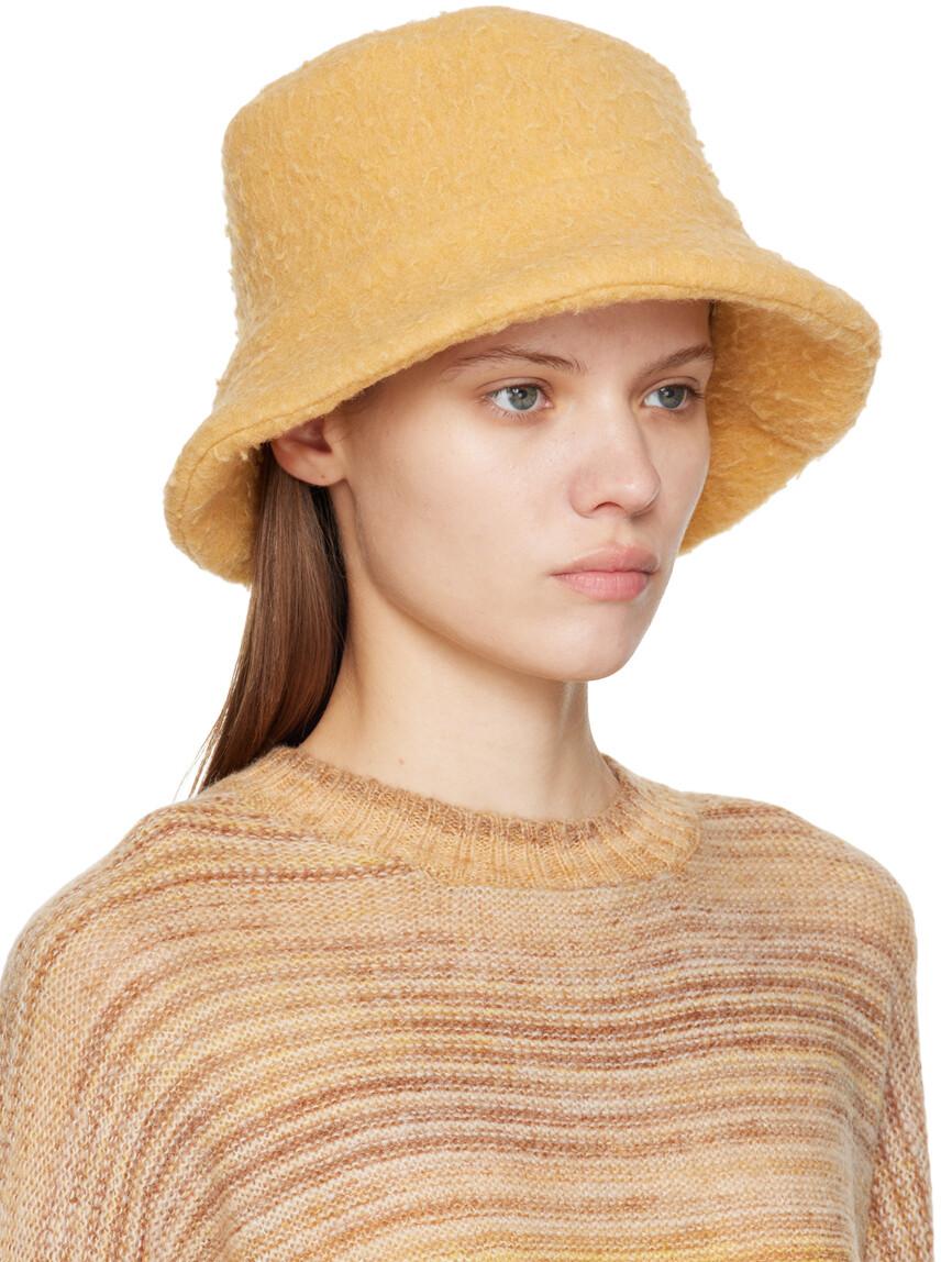 Желтая шляпа-ведро из войлочной смеси шерсти и полиэстера. Без подкладки.
