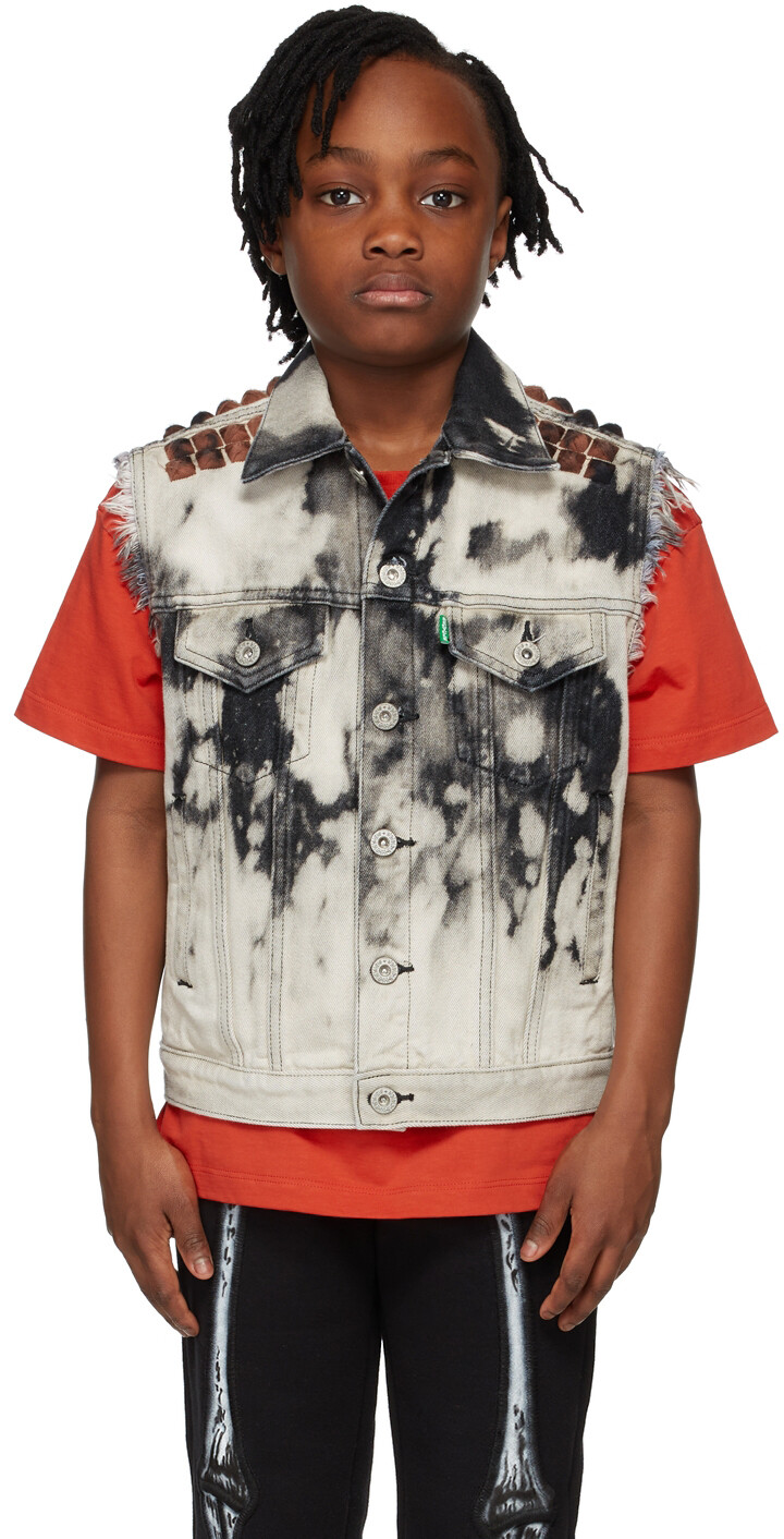Жилет в стиле панк Kids Black & Grey Denim Recycle Doublet