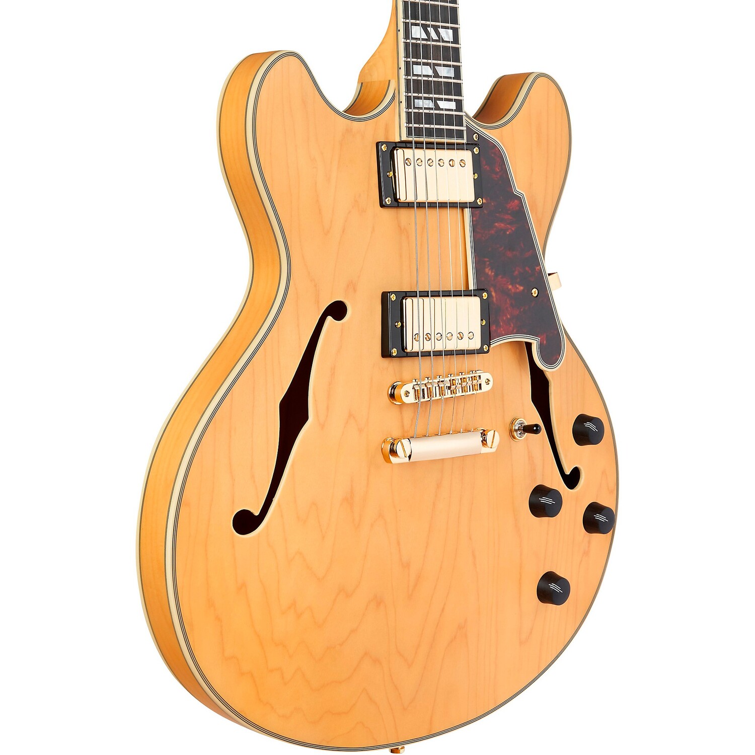 Особенности - Полуполый корпус с двойным вырезом и отделкой шпоном дао сверху, сзади и по бокам
