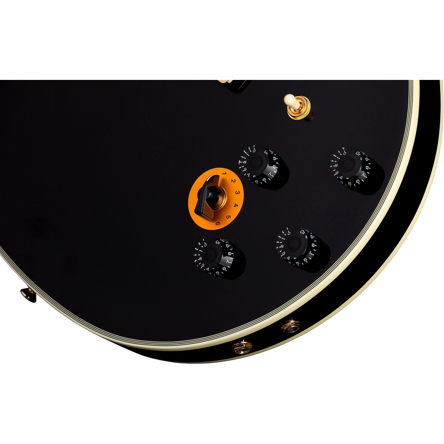 Полуполая электрогитара Epiphone, созданная на основе знаменитых гитар Люсиль Би Би Кинга. Эпифон BB King Lucille был вдохновлен различными моделями Gibson ES, на которых легенда блюза играла на протяжении многих лет, — все они назывались Люсиль. . Выдающиеся особенности, которые делают эту гитару Lucille такой потрясающей и любимой данью, включают золотую фурнитуру, колки Grover Rotomatic, порожок Graph Tech, накладку грифа из черного дерева с перламутровыми вставками, латунную крышку анкерного стержня с выгравированным на ней именем Би Би Кинга, перламутр. Инкрустация Lucille на передней части грифа, струнодержатель TP-6 с тонкими колками и полуполый корпус с кленовым центральным блоком для уменьшения обратной связи. В отличие от большинства гитар с полупустотелым корпусом, верхняя дека BB King Lucille не имеет отверстий; Сам Б.Б. попросил эту функцию, чтобы еще больше снизить вероятность обратной связи. Электроника также впечатляет: шестипозиционный переключатель Varitone, пара хамбакеров Alnico Classic PRO, подключенных к потенциометрам CTS, а также стерео- и моновыходные разъемы для максимальной гибкости. В комплект также входит футляр EpiLite.