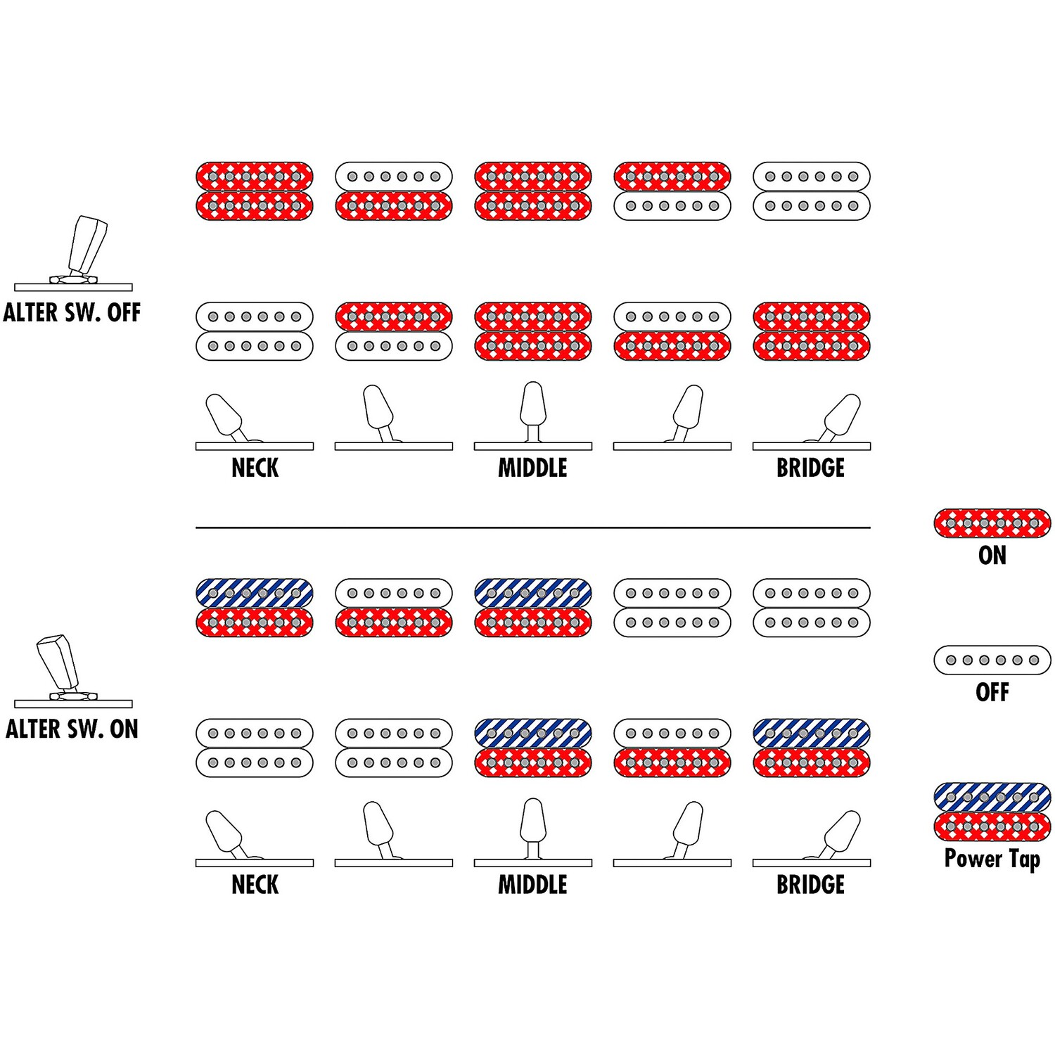 - Двойные хамбакеры Seymour Duncan Hyperion, проводка dyna-MIX 10, переключатель Alter для разделения катушек.