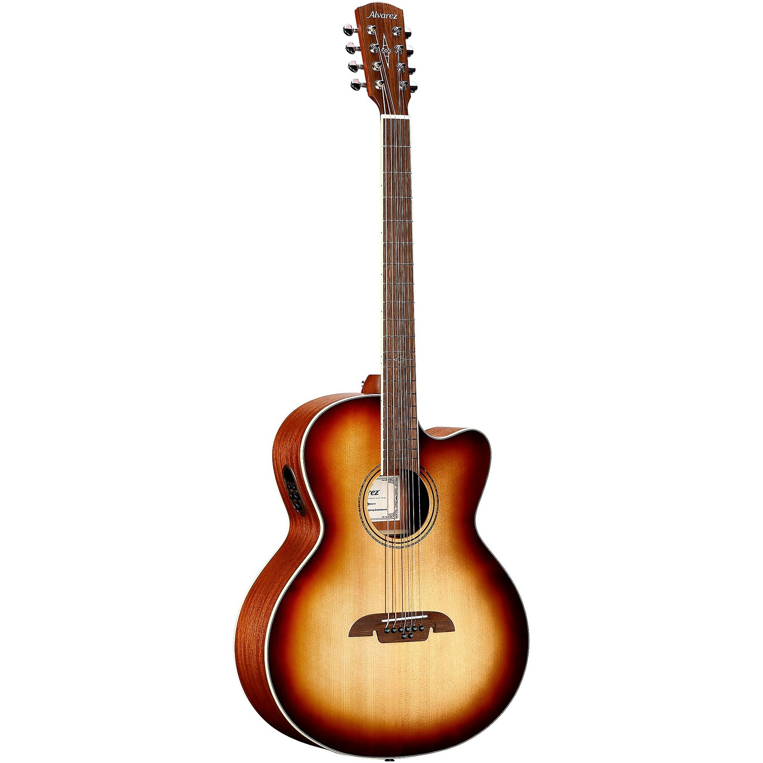 Спецификации 8-струнной баритоновой акусто-электрической гитары ABT60CE: Корпус- Верхняя древесина: массив ситкинской ели A+.