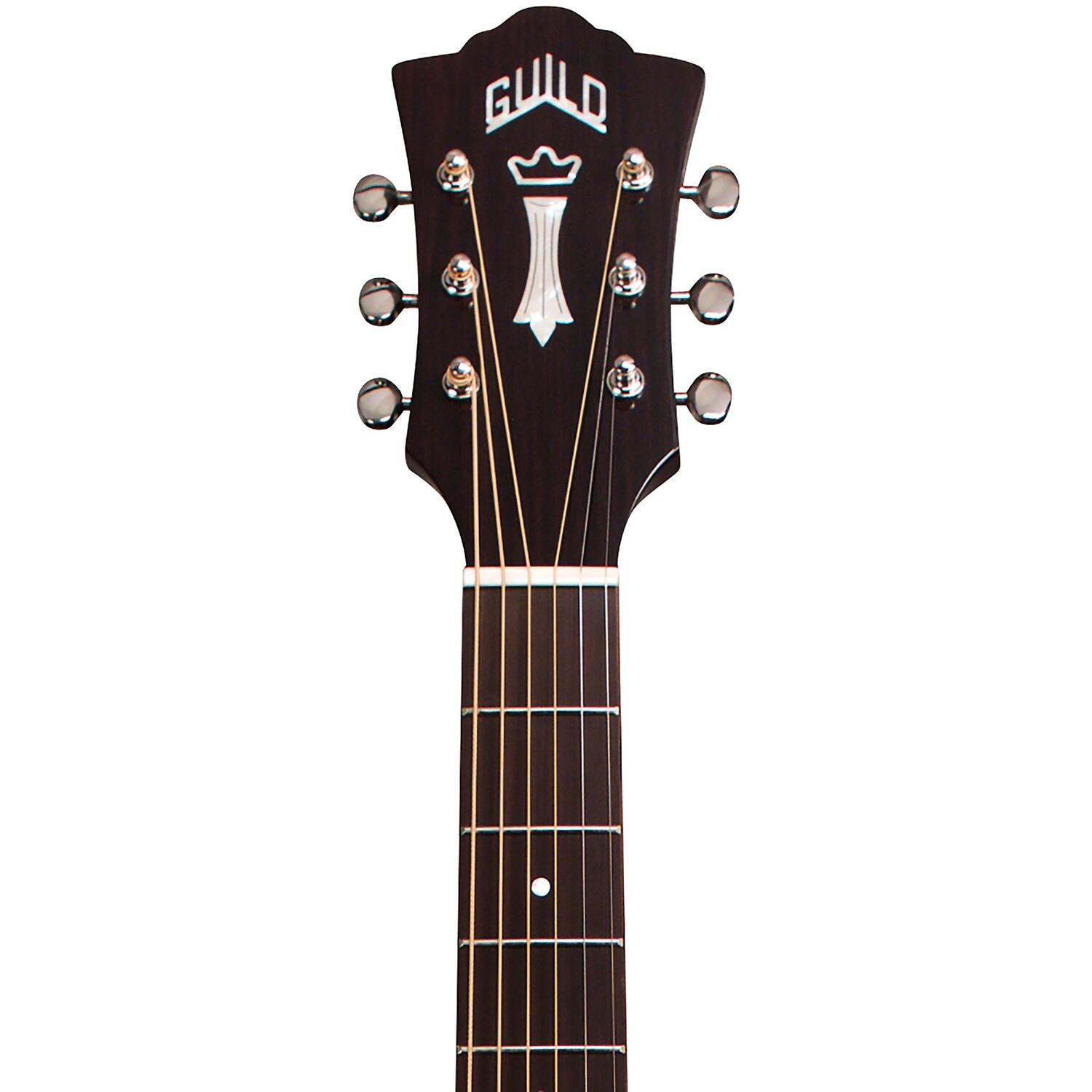 Дредноут-акустико-электрический звук с насыщенным и мощным звучанием. Насыщенный и мощный тембр этого акусто-электрического дредноута Guild D-150CE Westerly Collection обеспечивает гитаристам классический акустический звук и сбалансированное звучание. Акустико-электрическая модель Guild D-150CE имеет верхнюю деку из массива ситхинской ели и нижнюю и обечайки из массива палисандра, а также элегантный вырез для доступа к верхним ладам и скрытый звукосниматель Guild-Fishman AP1 со звукоснимателем Sonicore. Дополнительные особенности включают в себя накладку грифа и бридж из палисандра, костяной порожок и седло, а также соответствующую эпохе накладку из черепахового панциря. Перламутровая розетка и культовая эмблема Guild Chesterfield на головке грифа, напоминающая модели 1960-х годов, дополняют комплект. В комплект поставки D-150CE входит сумка Guild Premium и отделка с естественным блеском.