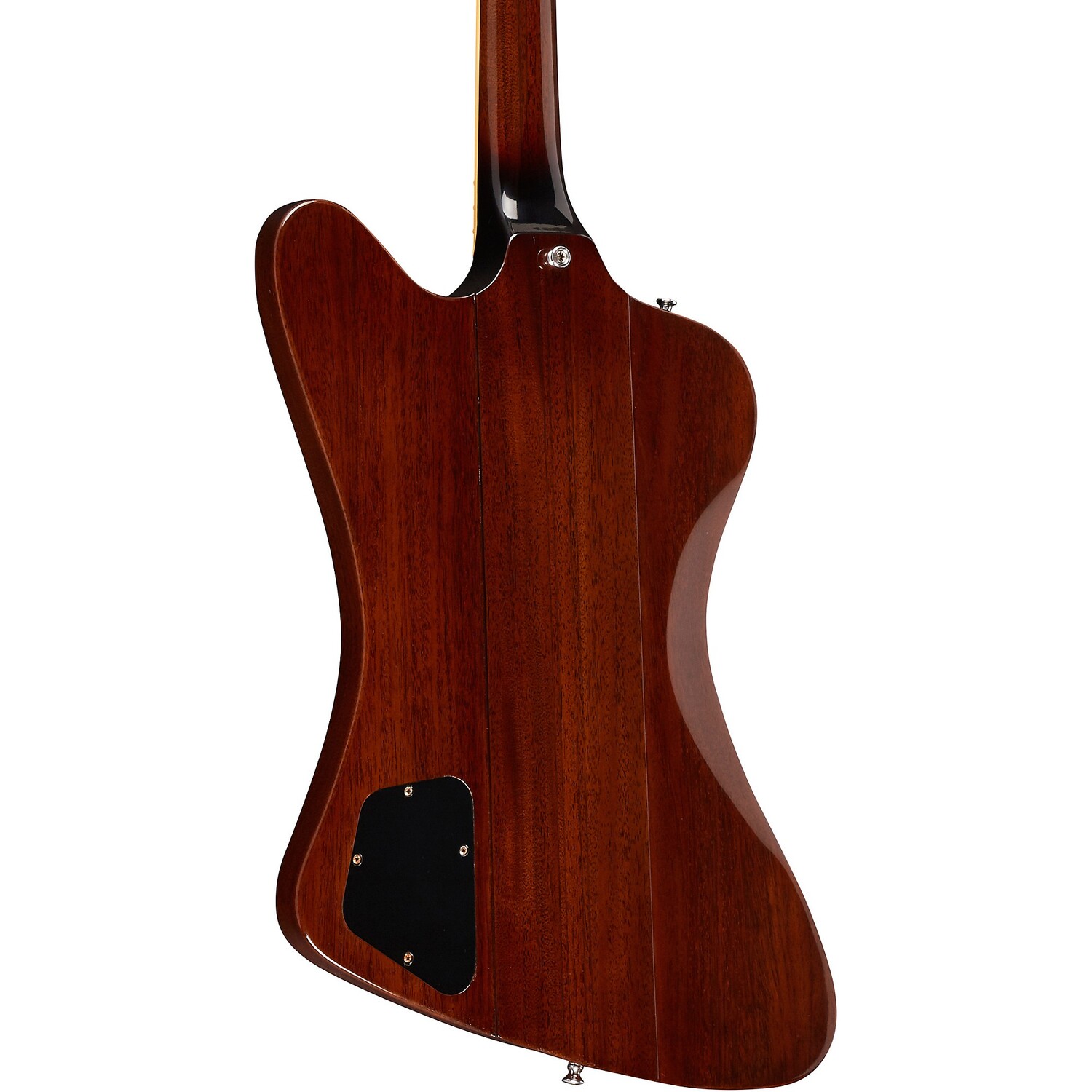 Тетальная копия классического дизайна Гибсона со сквозным вырезом. В 1963 году компания Gibson искала агрессивный современный вид для новой цельнокорпусной гитары, поэтому они обратились к автомобильному дизайнеру Рэю Дитриху. Дитрих был ответственным за создание как спортивного Packard Boat Tail Speedster, так и культового дизайна Checker Cab, поэтому Гибсон верил, что сможет создать стильную гитару, которая понравится простому человеку. Firebird V с уникальным смещенным корпусом и перевернутой головкой грифа с первого дня вошел в историю рок-н-ролла.