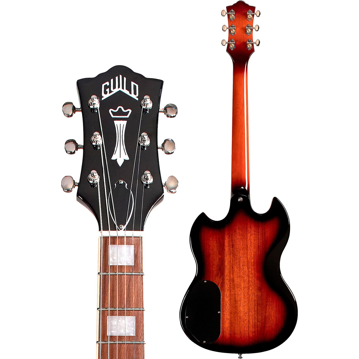 Оставайтесь в гармонии с Guild Винтажные открытые колкиPolara Deluxe оснащена открытыми колками Guild в винтажном стиле с соотношением сторон 18:1. Колки установлены на задней стороне головки грифа, что придает гитаре элегантный внешний вид. Благодаря передаточному числу 18:1 колки обеспечивают точный контроль настройки. В сочетании с установленным грифом эти колки обеспечивают стабильность и настройку Polara Deluxe даже при интенсивном использовании. Колки оснащены классическими ручками Guild в форме полумесяца, позволяющими легко регулировать настройку на лету.