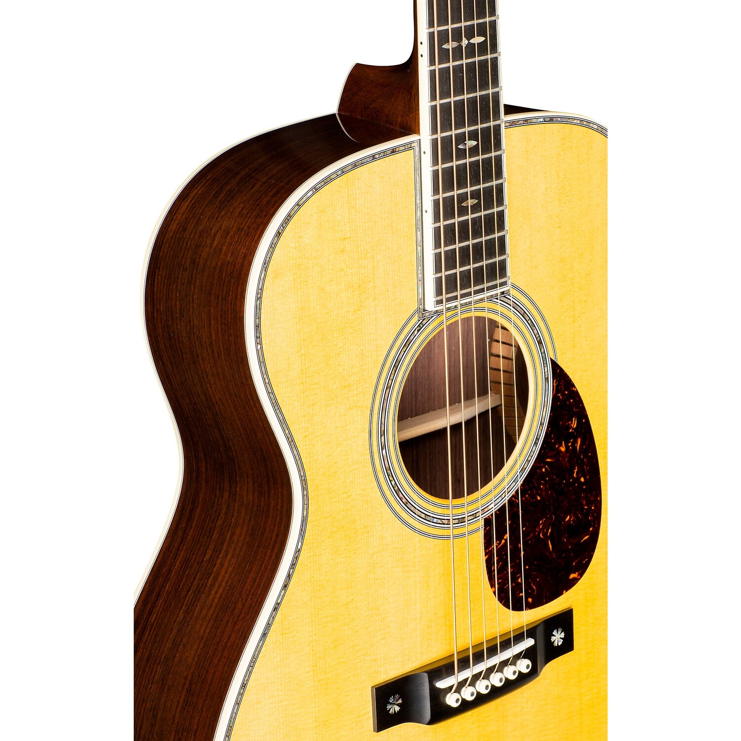 Неземной тон, который пробивает микс вкусными встречами. Стильный дизайн OM-42 Standard Orchestra добавляет щегольства классическому тону и ощущению задней и боковых сторон восточно-индийского палисандра, елового зубчатого X -подкрепленный верх и шейное соединение «ласточкин хвост», подогнанное вручную. Колки с открытой шестерней, старинная белая окантовка, полированная глянцевая отделка, накладка черепахового цвета и жемчужная вставка из морского ушка придают инструменту сияние и образцовое звучание. Длинная мензура и изящный модифицированный низкоовальный гриф с узким конусом позволяют играть часами с комфортом и блаженством.