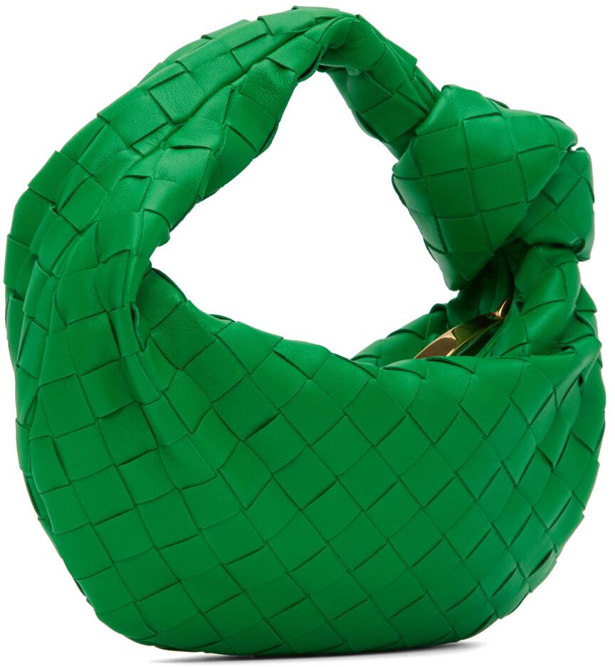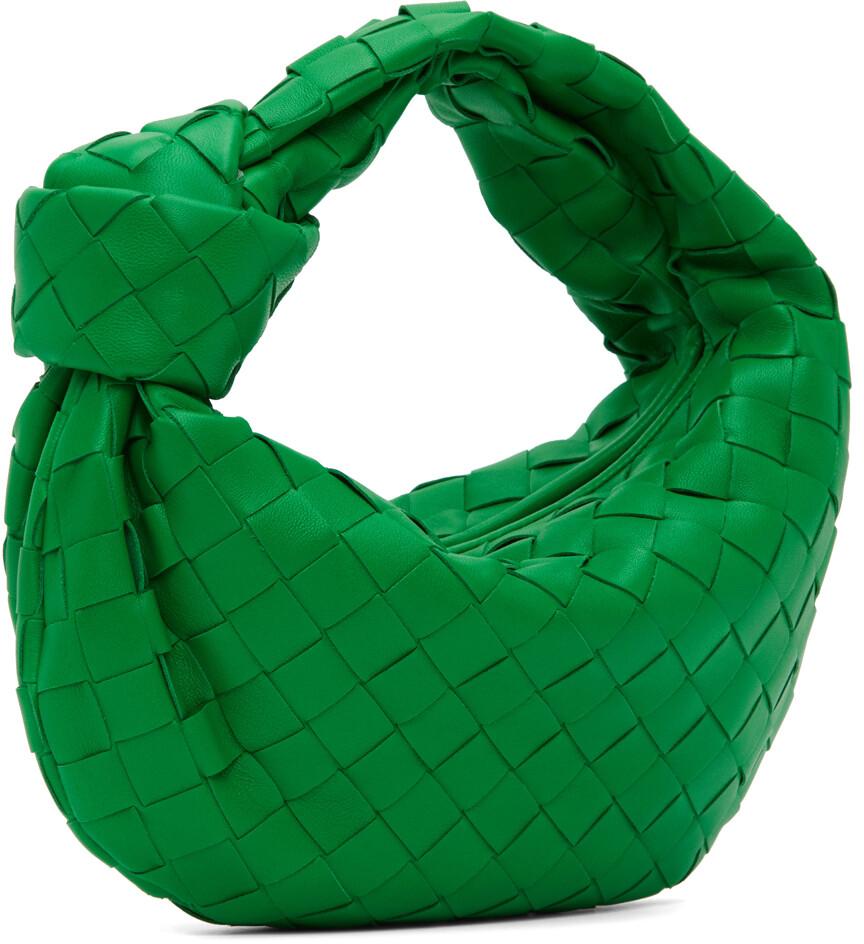 Зеленая сумка с ручкой из зернистой кожи ягненка и телячьей кожи, выполненная методом интреччиато.