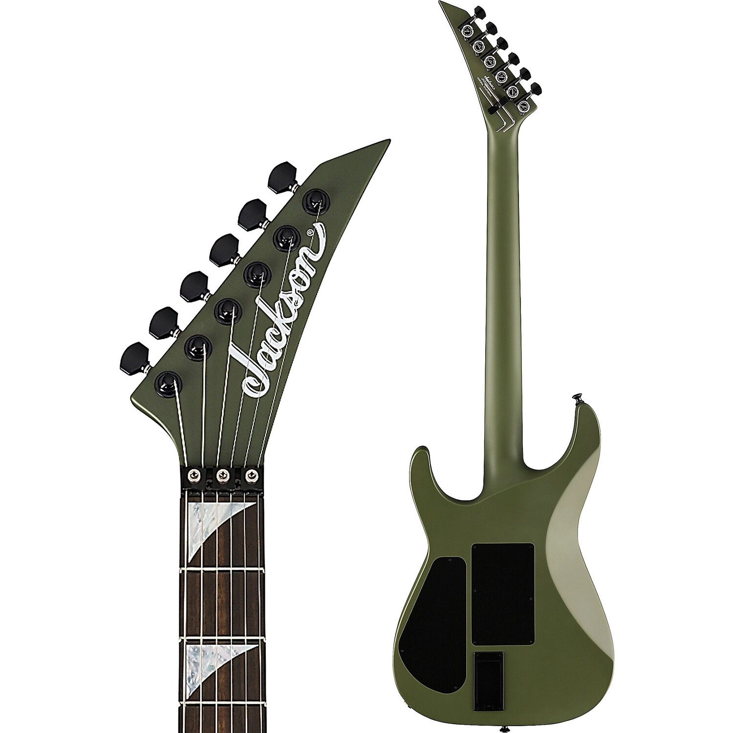 Создан для агрессивной игры с тремоло Floyd RoseБридж Floyd Rose 1500 Series с двойной блокировкой обеспечивает надежную стабильность настройки даже во время самых смелых игровых представлений. Колки Gotoh MG-T с блокировкой и кнопки ремешка с двойной блокировкой Dunlop обеспечивают безопасность. Заостренная голова грифа Jackson, доступная в стильной отделке, например Matte Army Drab, дополняет фирменную металлическую атмосферу.