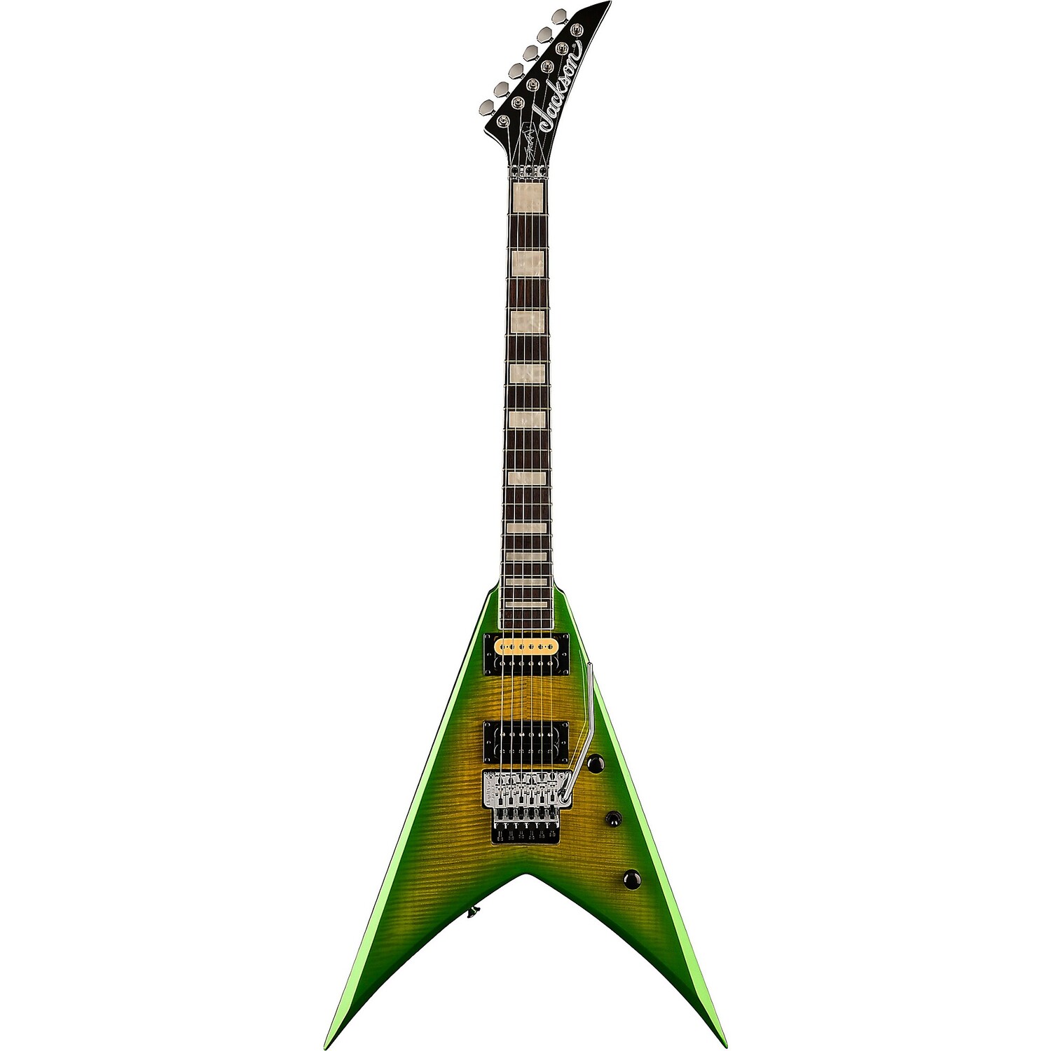 Модель X Series Scott Ian KVX King V «Baldini» имеет мензуру длиной 24,75 дюйма, корпус Nyatoh с элегантной верхней декой из огненного клена, сквозной кленовый гриф с графитовым усилением и шарнирным соединением. Накладка грифа из палисандра радиусом 12–16 дюймов имеет 22 гигантских лада и вставки из перламутровых блоков. Его универсальный голос поддерживается парой высокопроизводительных хамбакеров Jackson, двойным блокирующим бриджем Floyd Rose Special, литыми колками Jackson и остроконечной 6-рядной головкой грифа.