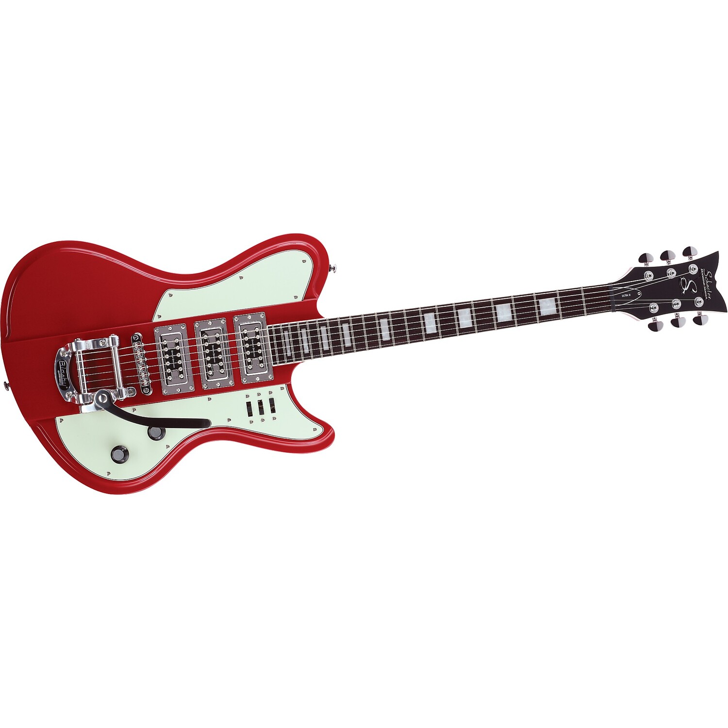 Рокабилли звучит с оттенком рычания. Электрогитара Ultra III имеет корпус из красного дерева с приподнятым центром и рельефным краем, накладку грифа из палисандра, вставки из перламутровых блоков, звукосниматели Duncan Designed FG-101 и механизм Tune. -o-matic-стиль с струнодержателем вибрато Bigsy B-50.