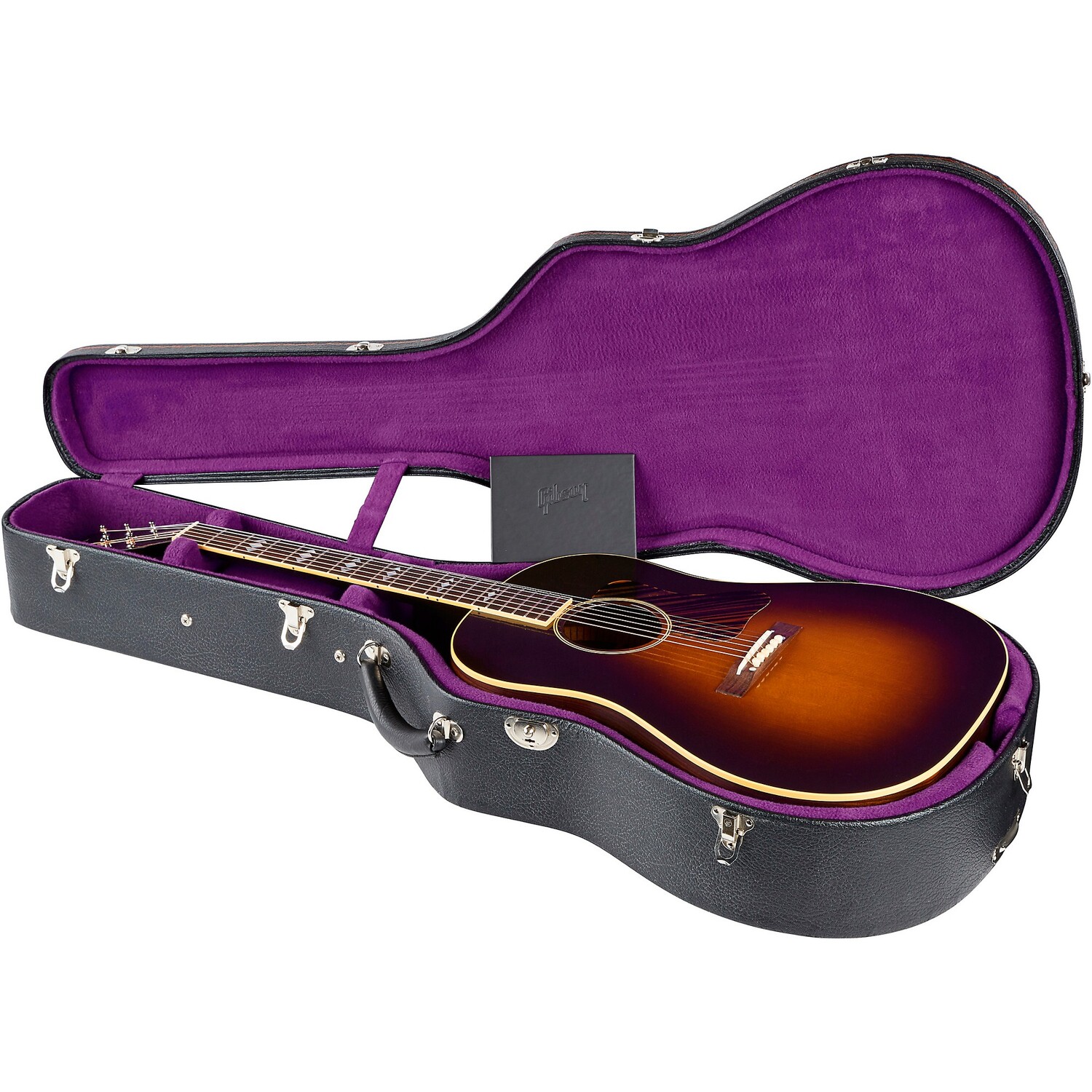 Акустика Gibson Jumbo с верхней декой из термически состаренной красной ели и нижней и боковыми сторонами из палисандра. В то время, когда культурный оптимизм был низким, Гибсон придумал новую линейку «продвинутых» инструментов; В эти модели входил Advanced Jumbo. Из-за небольшого количества производства в 1936–1939 годах эта модель в значительной степени оставалась незамеченной, хотя это был инструмент с превосходным звучанием и исполнением. Gibson Acoustic Custom Shop 1936 Advanced Jumbo оснащен верхней декой из термически состаренной красной ели Адирондак, нижней декой и боковыми сторонами из красного дерева и колками премиум-класса Waverly. Gibson Advanced Jumbo 1936 года возвращает тот тон и престиж, которые сделали эти инструменты востребованными художниками и коллекционерами.