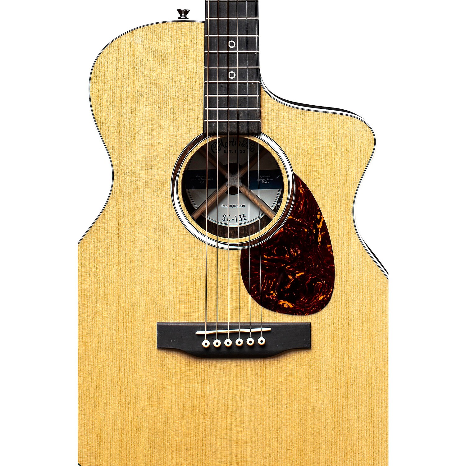 Верх из ели с сатинированной отделкой создает яркий, сбалансированный акустический звукВ качестве верхней части корпуса SC-13E Мартин выбрал массив ели премиум-класса. Легкая и резонансная ель создает полный, сбалансированный звук с четкими высокими и плотными басами. Сатиновая отделка позволяет древесине свободно вибрировать, придавая объем и сустейн. Наигранные ритм-аккорды звучат ясно и четко. Выбор отдельных нот обеспечивает четкий тон и впечатляющую проекцию, идеально подходящую для соло. Сбалансированная частотная характеристика ели означает, что каждая нота звучит в SC-13E.