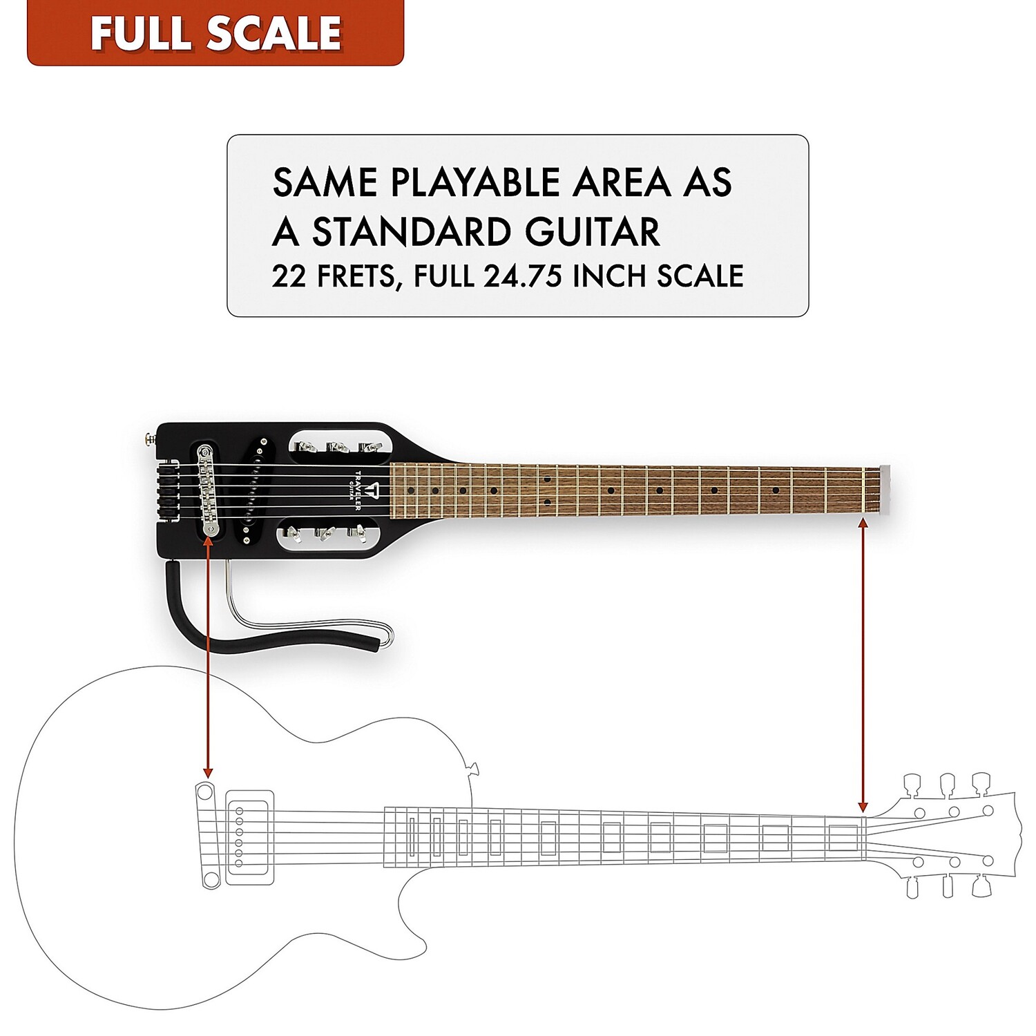Особенности - Полный 24-3/4" масштабная электрическая дорожная гитара.