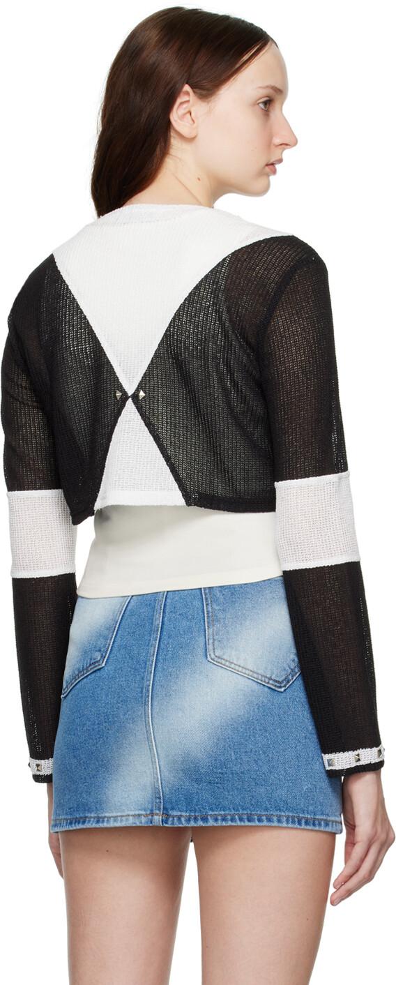 Кардиган открытой вязки из полиэстера и льна со вставками. Заклепки повсюду.