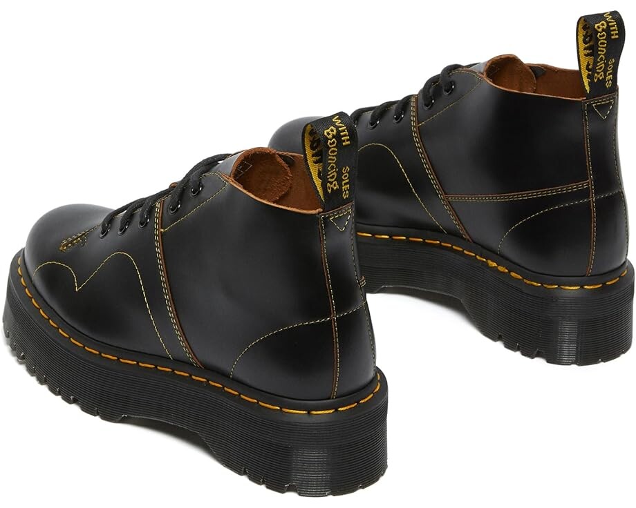 Верх изготовлен из прочной кожи Black Vintage Smooth с характерной текстурой, устойчивой к мелким повреждениям. Задний язычок облегчает надевание, а шнуровка обеспечивает плотную посадку по стопе. Подошва из резины с воздушной амортизацией обеспечивает комфорт при ходьбе, снимая нагрузку с суставов.
