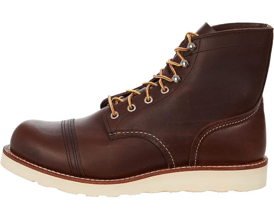 Оцените прочность и долговечность шнуровки Red Wing Shoes Iron Ranger Traction Tred. Ботинки имеют рант Goodyear и тройную строчку Puritan, а цельные латунные хромированные люверсы и скоростные крючки обеспечивают точную шнуровку и визуальный эффект фурнитуры. Мягкая кожа позволяет ноге дышать и естественным образом отводит влагу, обеспечивая прохладу и комфорт. сухие ноги в течение дня.