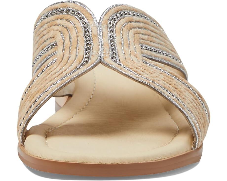 Thrill. Верх из искусственной кожи, стелька из пеноматериала с кожаной обивкой и подкладка из искусственной кожи. Шлепанцы в сочетании с кордовой тканью и металлическими украшениями создают уникальный модный образ. Сандалии имеют блочный каблук для сцепления с поверхностью.